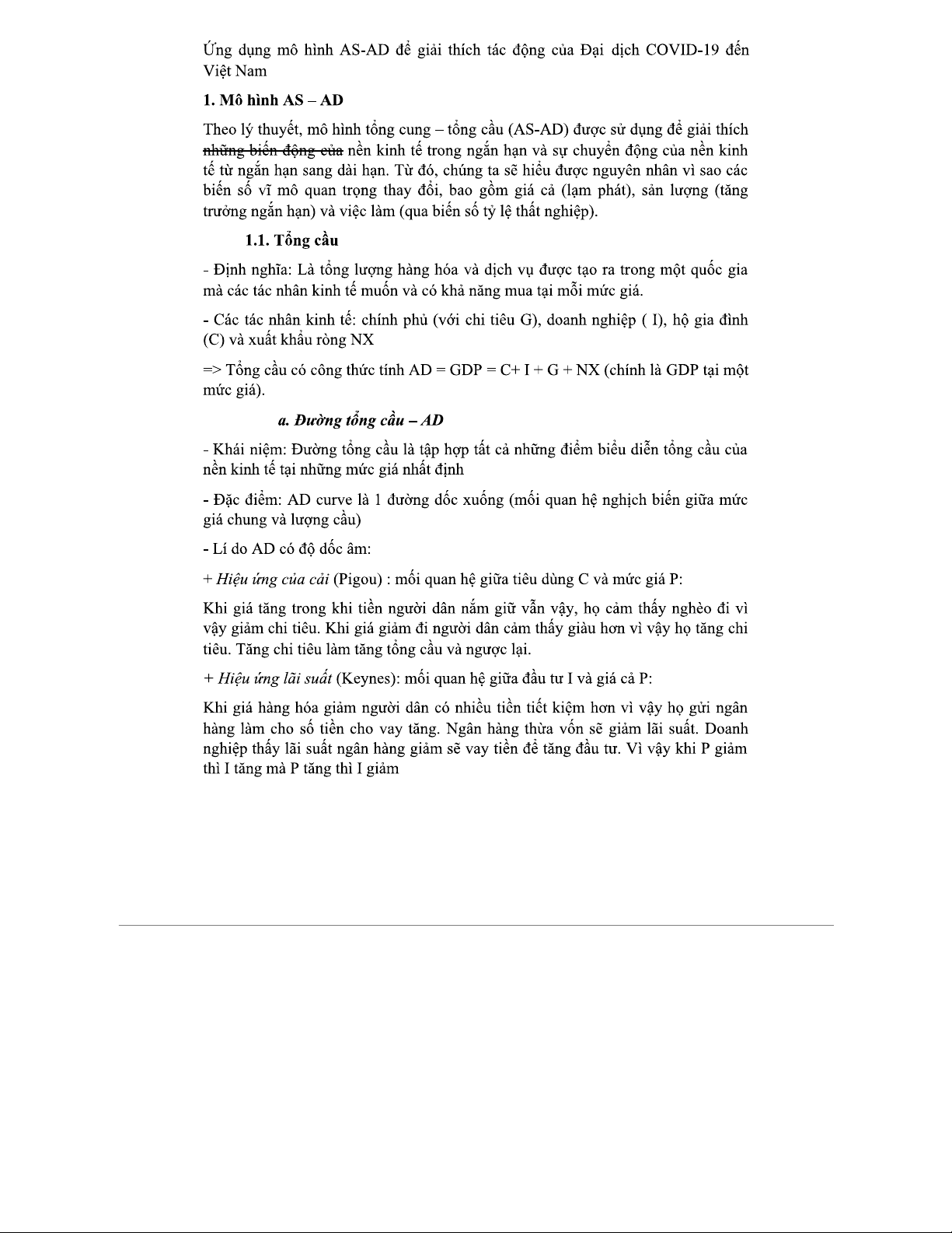 Ứng dụng mô hình AS-AD phân tích tác động của COVID-19 đến VN
