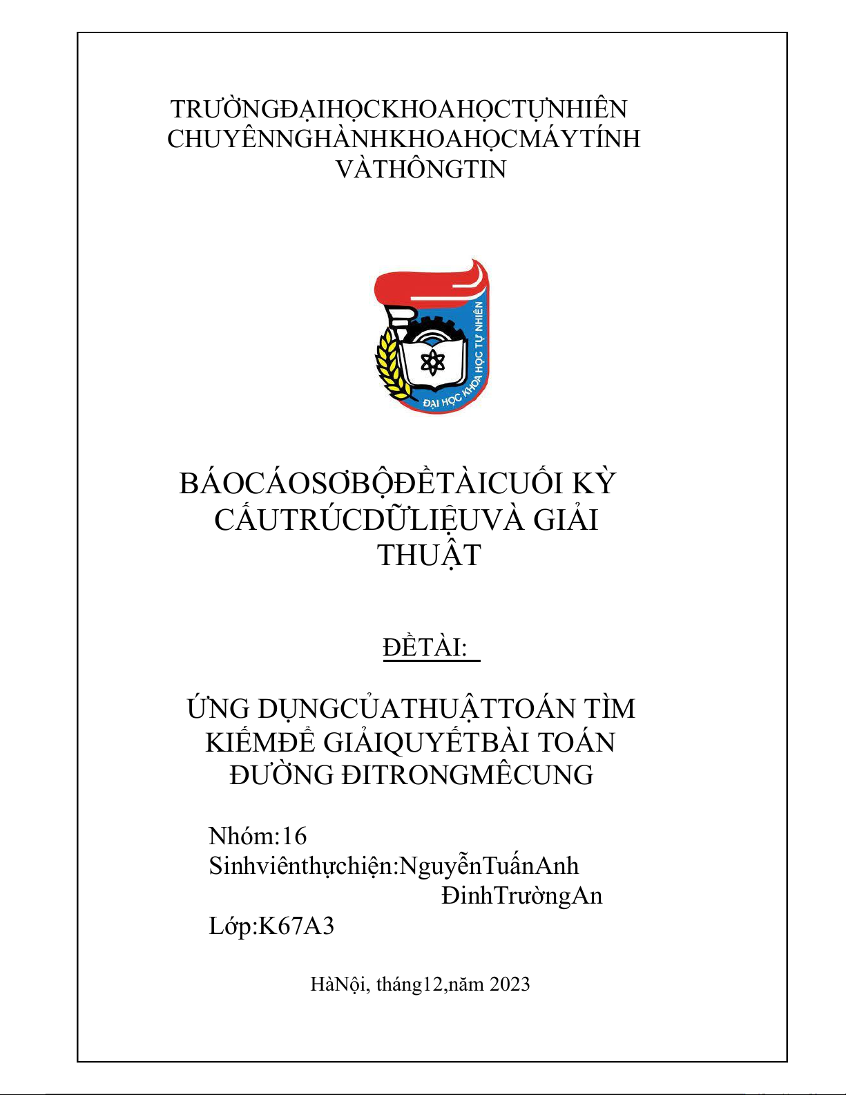 Sinhviênthựchiện:NguyễnTuấnAnh ĐinhTrườngAn Lớp:K67A3 HàNội, tháng12,năm 2023
