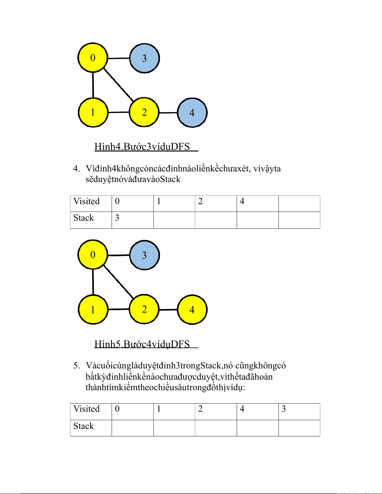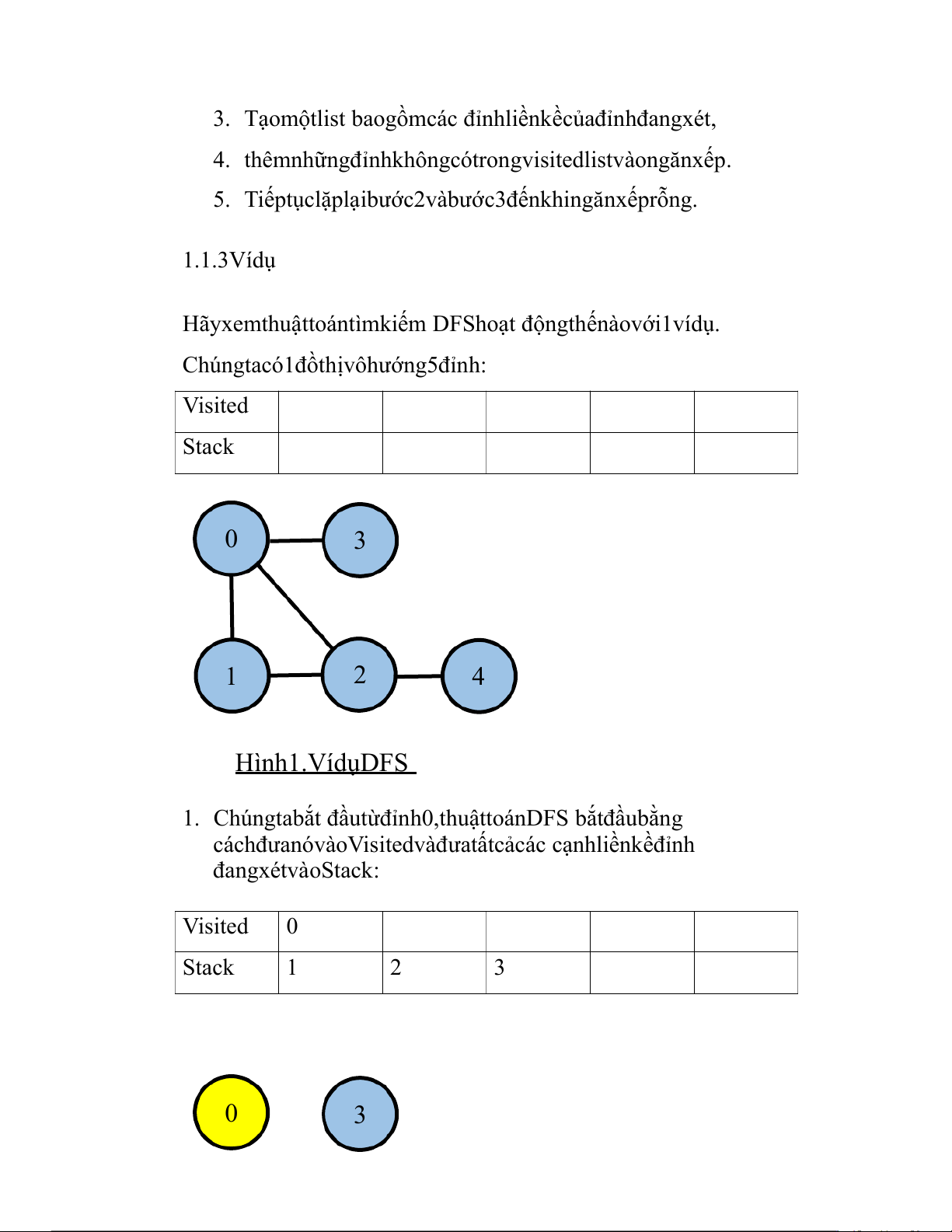 Chúngtacó1đồthịvôhướng5đỉnh: Visited Stack 0 3 1 2 4 Hình1.VídụDFS