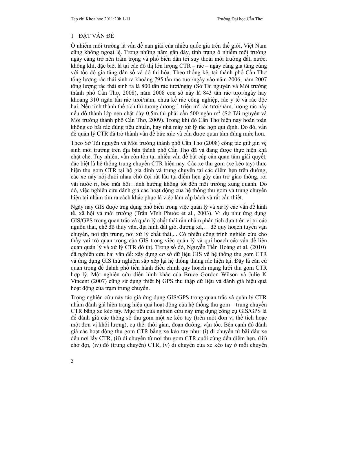 Từ khóa: GIS, GPS, chất thải rắn đô thị, thu gom, trung chuyển, điểm hẹn