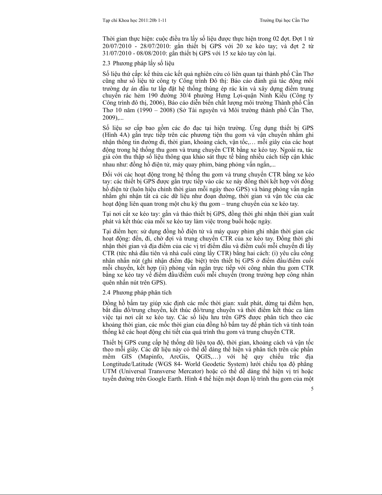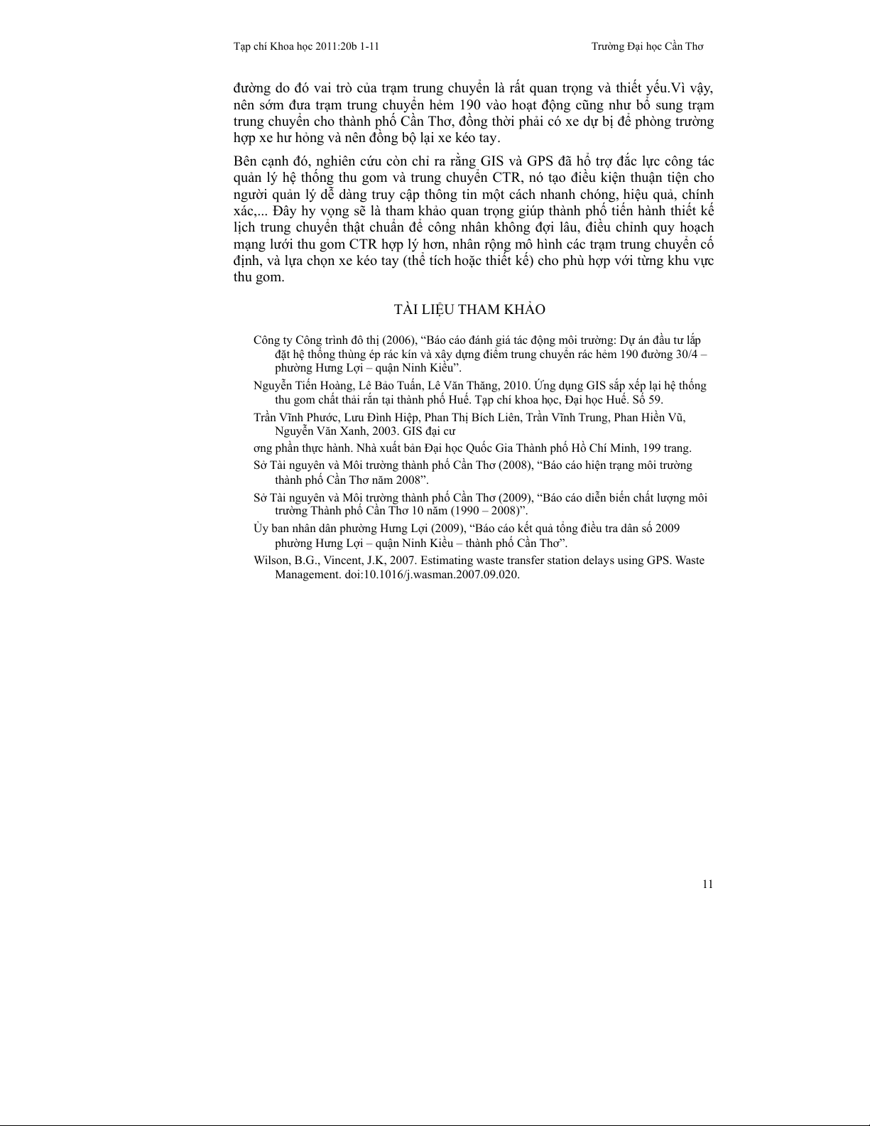 thu gom chất thải rắn tại thành phố Huế. Tạp chí khoa học, Đại học Huế. Số 59.