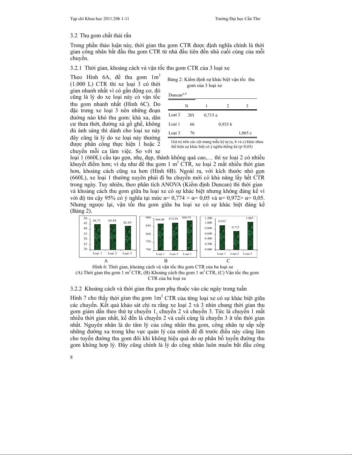 thấy không có sự khác biệt đáng kể về thời gian và khoảng cách thu gom 1m3 CTR