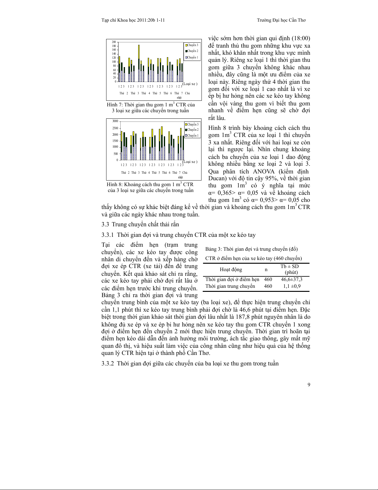chuyển), các xe kéo tay được công Bảng 3: Thời gian đợi và trung chuyển (đổ)