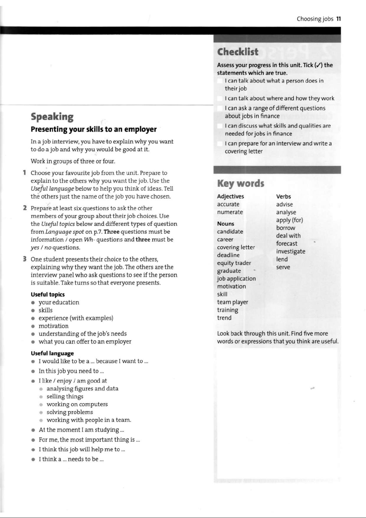 Unit 1 Choosing jobs | Tài liệu Tiếng Anh. Tài liệu giúp bạn tham khảo, ôn tập và đạt kết quả cao. Mời đọc đón xem!