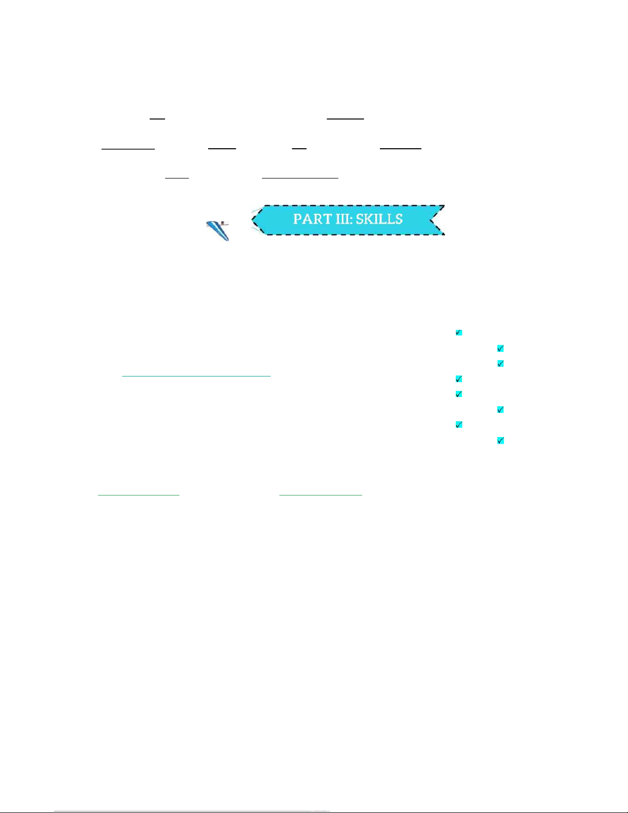 Thqc hien Tran Truñng Thanh (Zalo 0369904425), ai dang kinh doanh tai lieu nay la gia refillable (adj) /, ri:'filabl/ co the lñm day l@ reusable (adj) /, ri:'ju:zabl/ co the tâi sir dog set up (v) /set ap/ tharth lap shade (n) /Jeid/ bong râm situation (n) /, sitJii'eiJn/ tinh huong suggestion (n) /sa'dyestJñn/ lñi d“e nghi sustainable (adj) /sa'stemabl/ ben vtmg trash = rubbish = waste (n) /trm// /'rdbi// /weist/ rac thâi turn off (v) /'t3:n of/ tat take part in (v) /teik po:t m/ tham gia temperature (n) /'temprat/a(r)/ nhiet dâ waste (v) /weist/ ling phi B. GRAMMAR