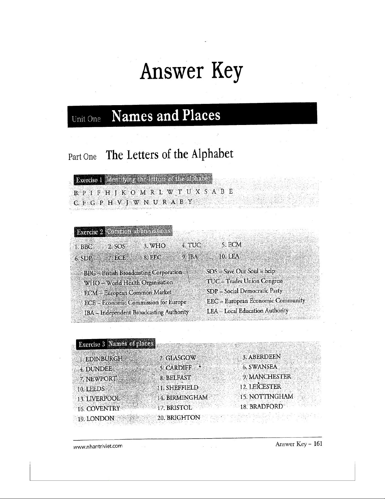 Listening Answer Key: Unit One & Two Overview | English 1 (TĐT) | Đại học Tôn Đức Thắng