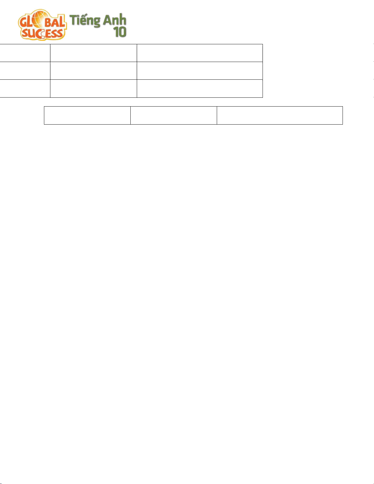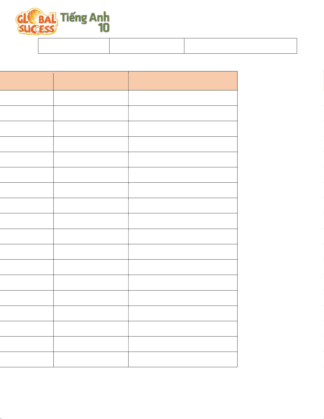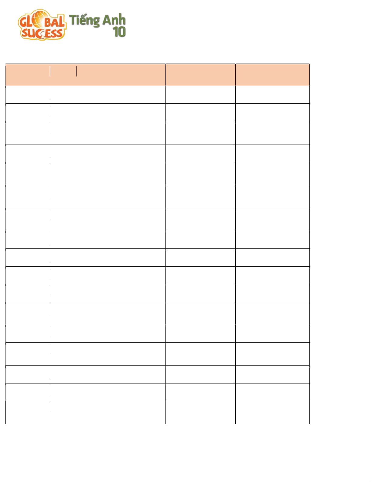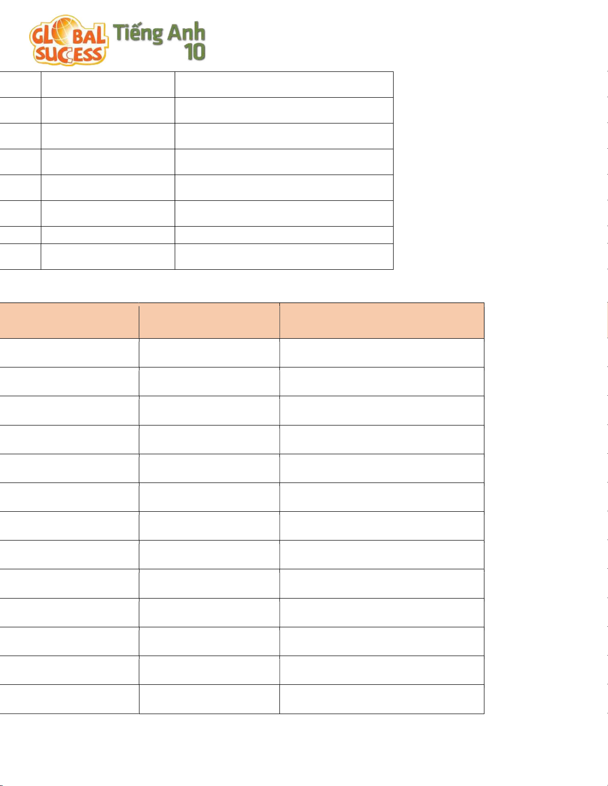 phương ện giao thông công cộng refil able (adj) /ˌriːˈfɪləbl/ có thể làm đầy lại resource (n) /rɪˈsɔːs/, /rɪˈzɔːs/ tài nguyên, nguồn lực sustainable (adj) /səˈsteɪnəbl/ bền vững Unit 3: Music PRONUNCIATION MEANING bamboo clapper (n) /ˌbæmˈbuː ˈklæpə/ phách /'kɒment/ lời bình luận /ˌkɒmpəˈtɪʃn/ cuộc tranh tài, cuộc thi /'kɒnsət/ buổi hoà nhạc /ˌdekəˈreɪʃn/ việc trang trí /dɪˈleɪ/ hoãn lại /ɪˈlɪmɪneɪt/ loại ra, loại trừ /dʒʌdʒ/ giám khảo /laɪv/ trực ếp /ləʊˈkeɪʃn/ vị trí, địa điểm shaped lute /ˈmuːn ʃeɪpt luːt/ đàn nguyệt