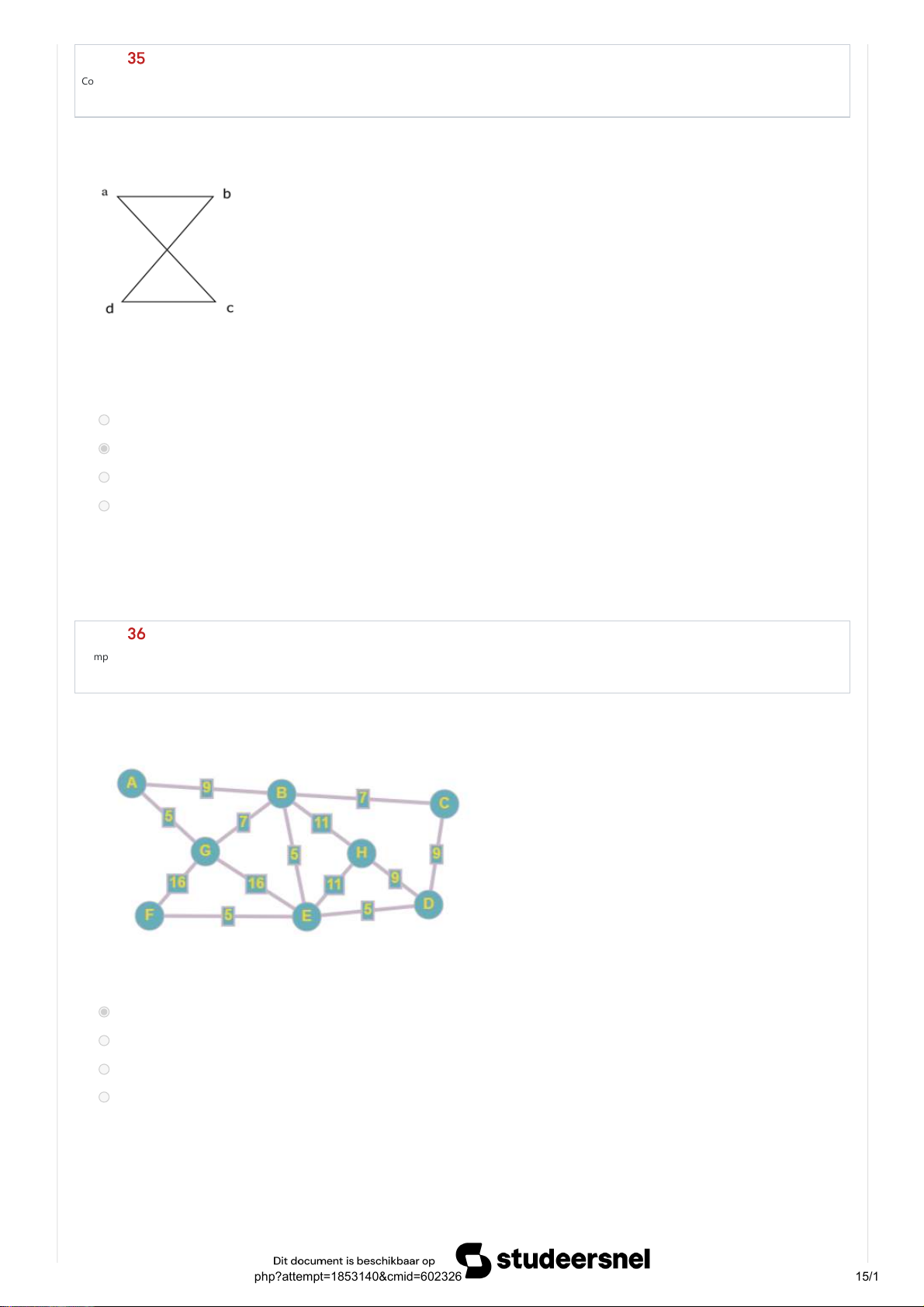 Downloaded by H?i ??ng Tr?n (7g6xzhh7fz@privaterelay.appleid.com) lOMoARcPSD|60562346 1/5/25, 11:18 AM Ôn tập: Attempt review Question 35 Complete Mark 0.00 out of 1.00 Cho đồ thị