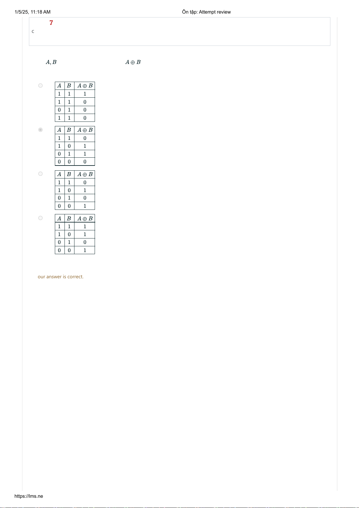 Downloaded by H?i ??ng Tr?n (7g6xzhh7fz@privaterelay.appleid.com) lOMoARcPSD|60562346 1/5/25, 11:18 AM Ôn tập: Attempt review Question 7 Complete Mark 1.00 out of 1.00