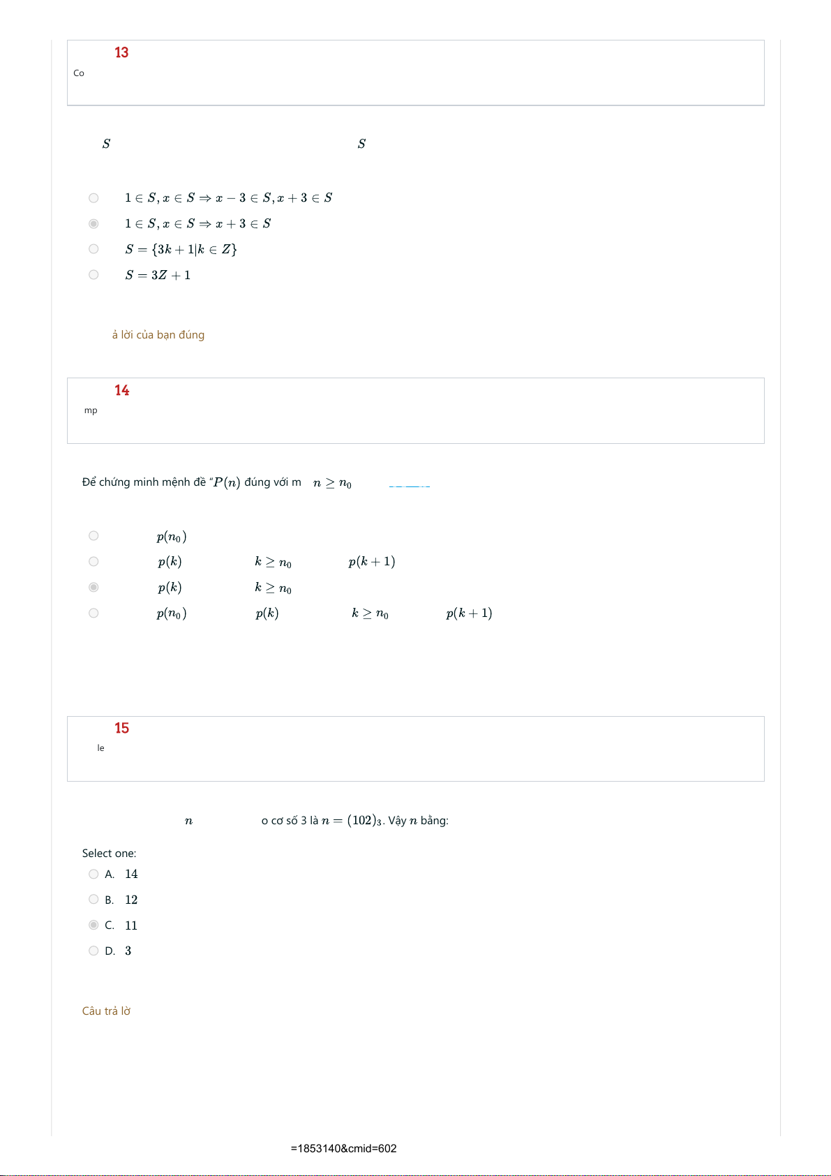 Câu trả lời của bạn sai. Question 15 Complete Mark 1.00 out of 1.00 Biết rằng số nguyên