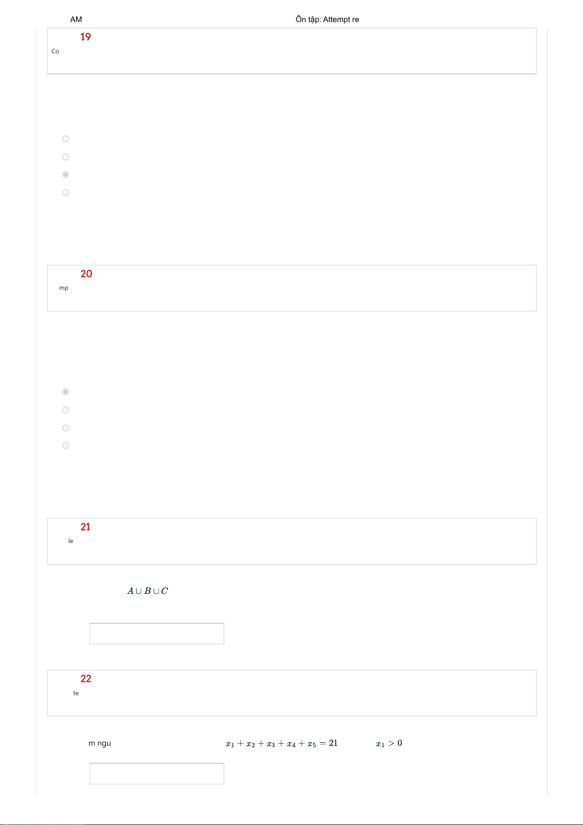 phần tử chung của cả 3 tập. Answer: 350 Question 22 Complete Mark 1.00 out of 1.00