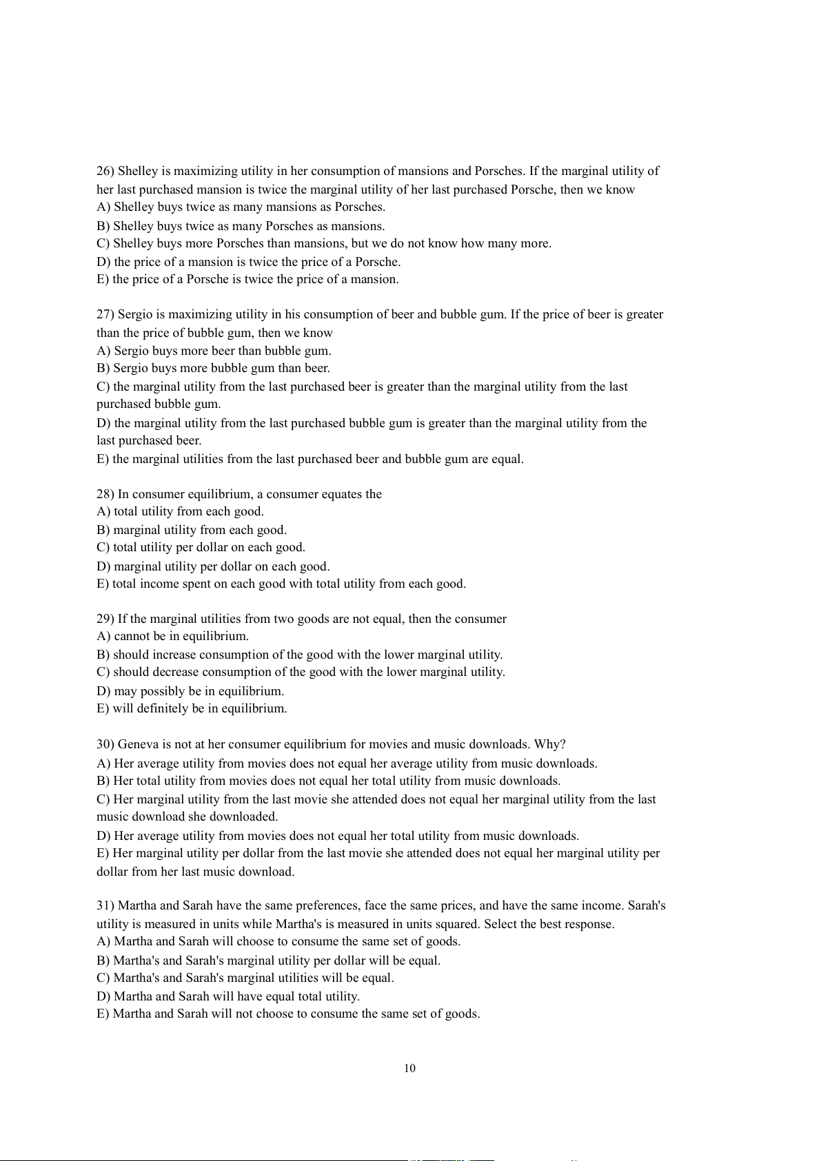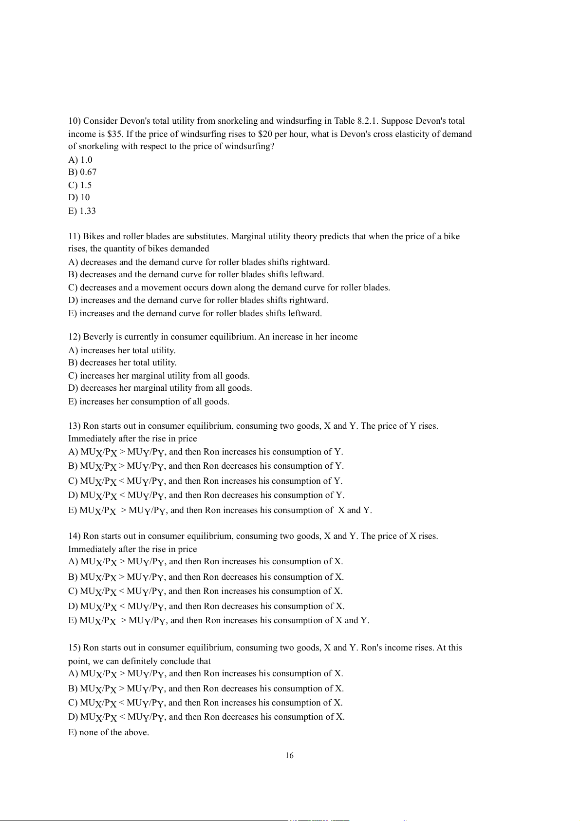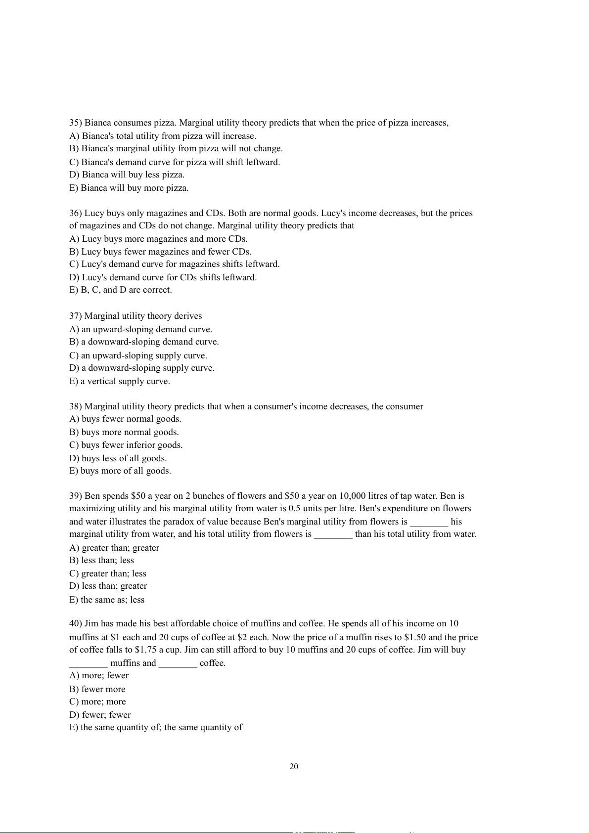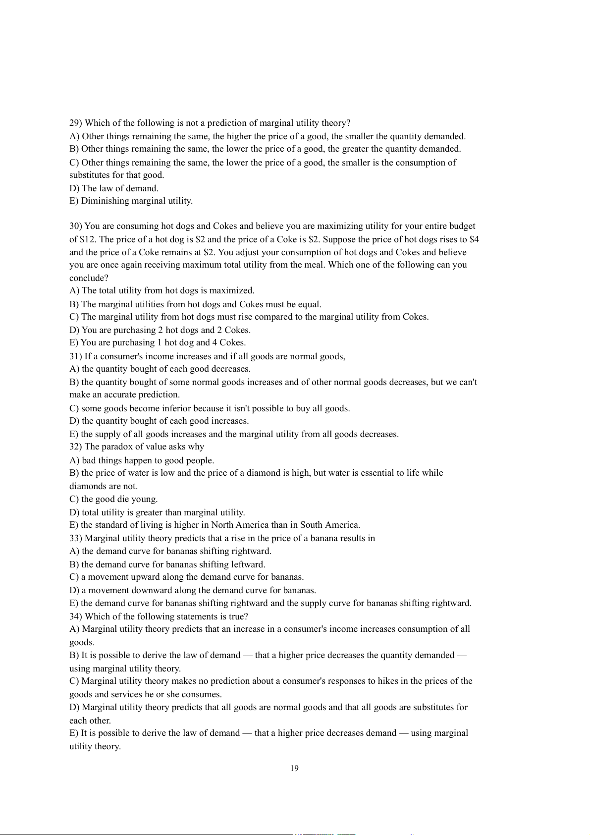 E) It is possible to derive the law of demand — that a higher price decreases demand — using marginal utility theory. 19