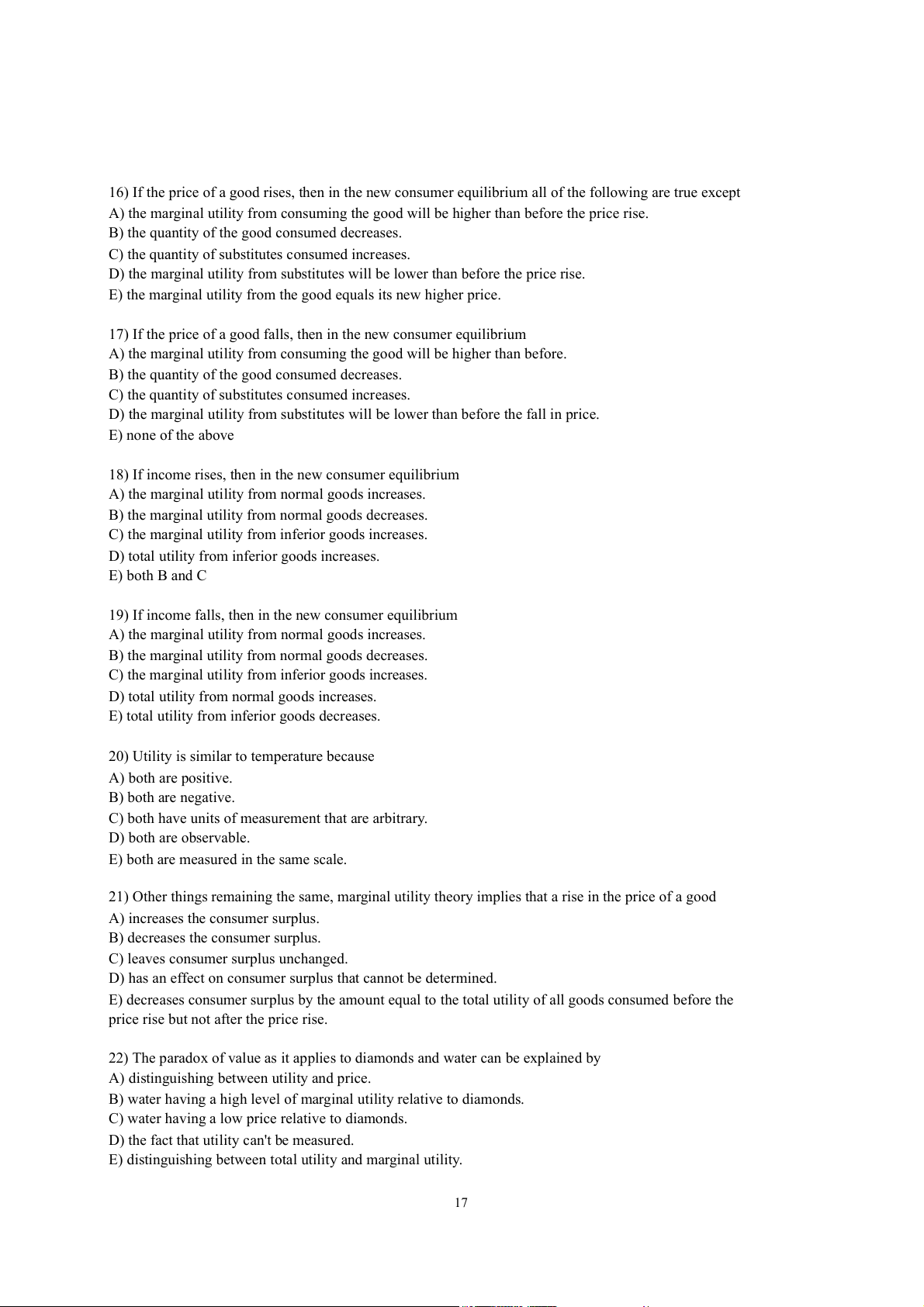 E) total utility, while price relates to marginal utility. 18