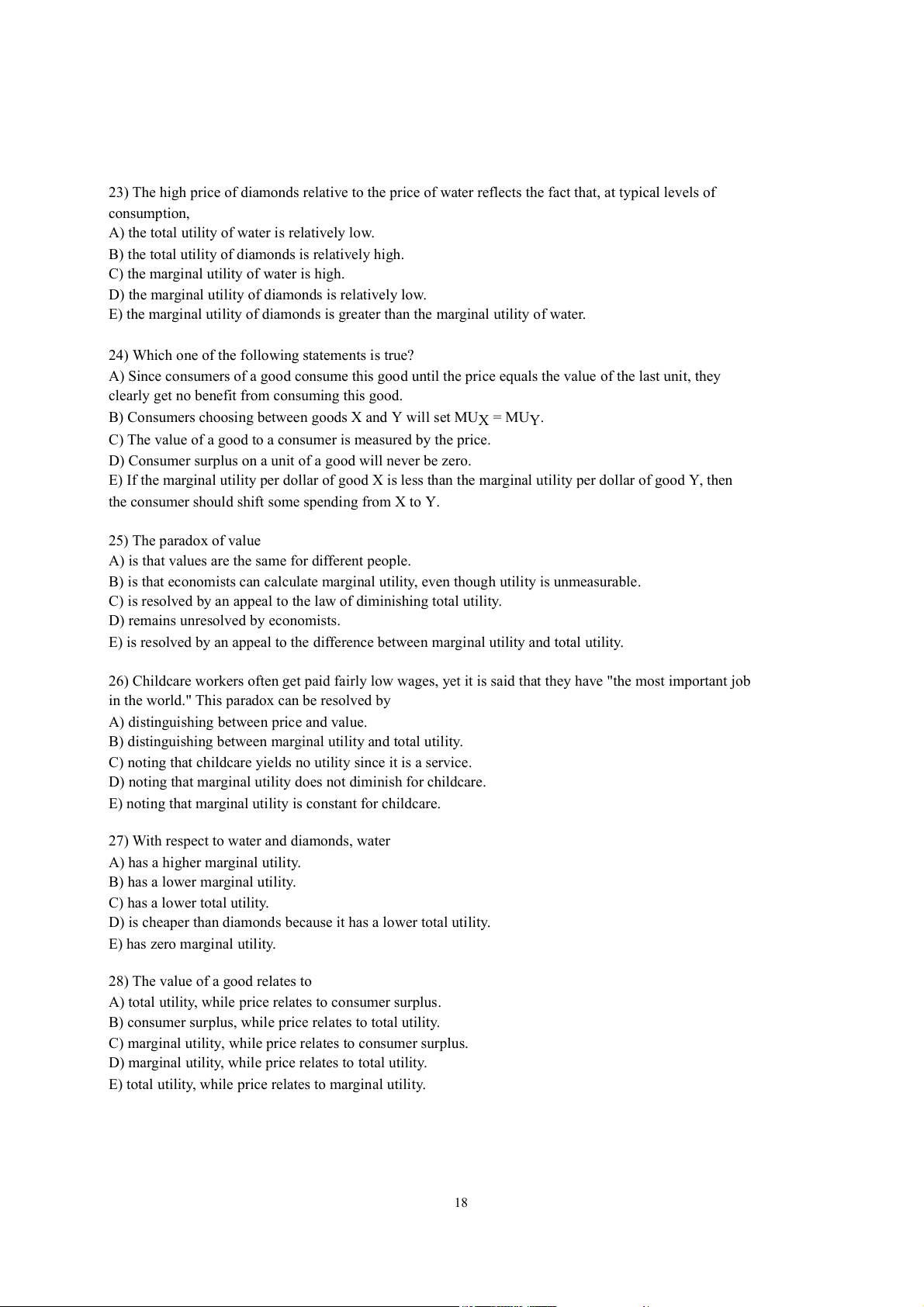 the consumer should shift some spending from X to Y. 25) The paradox of value