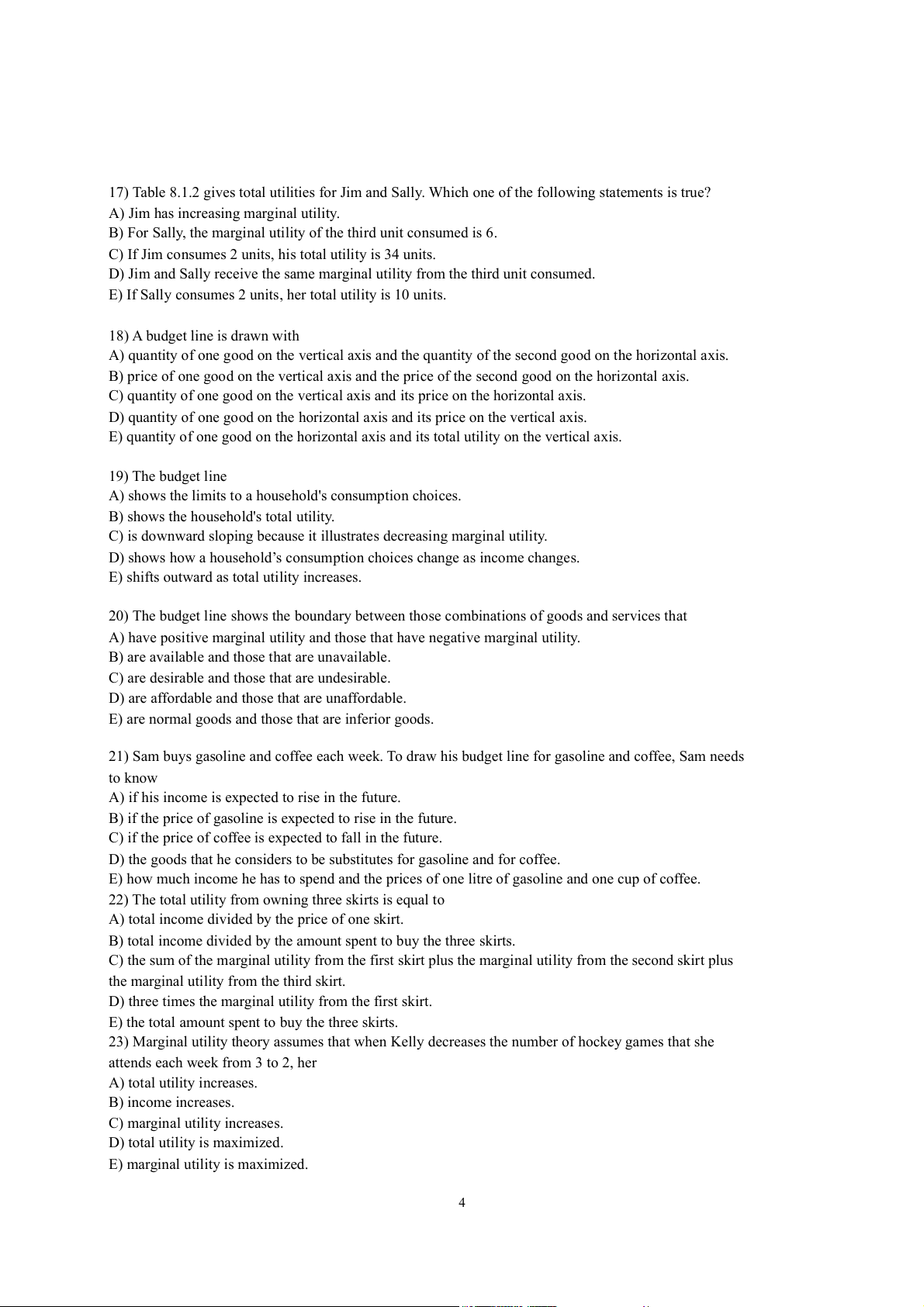 23) Marginal utility theory assumes that when Kelly decreases the number of hockey games that she