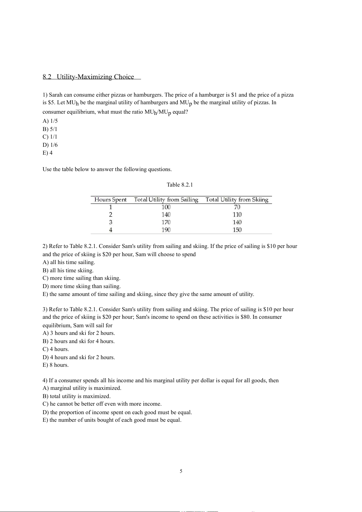 Chapter 8 Utility and Demand 8.1 Consumption Choices