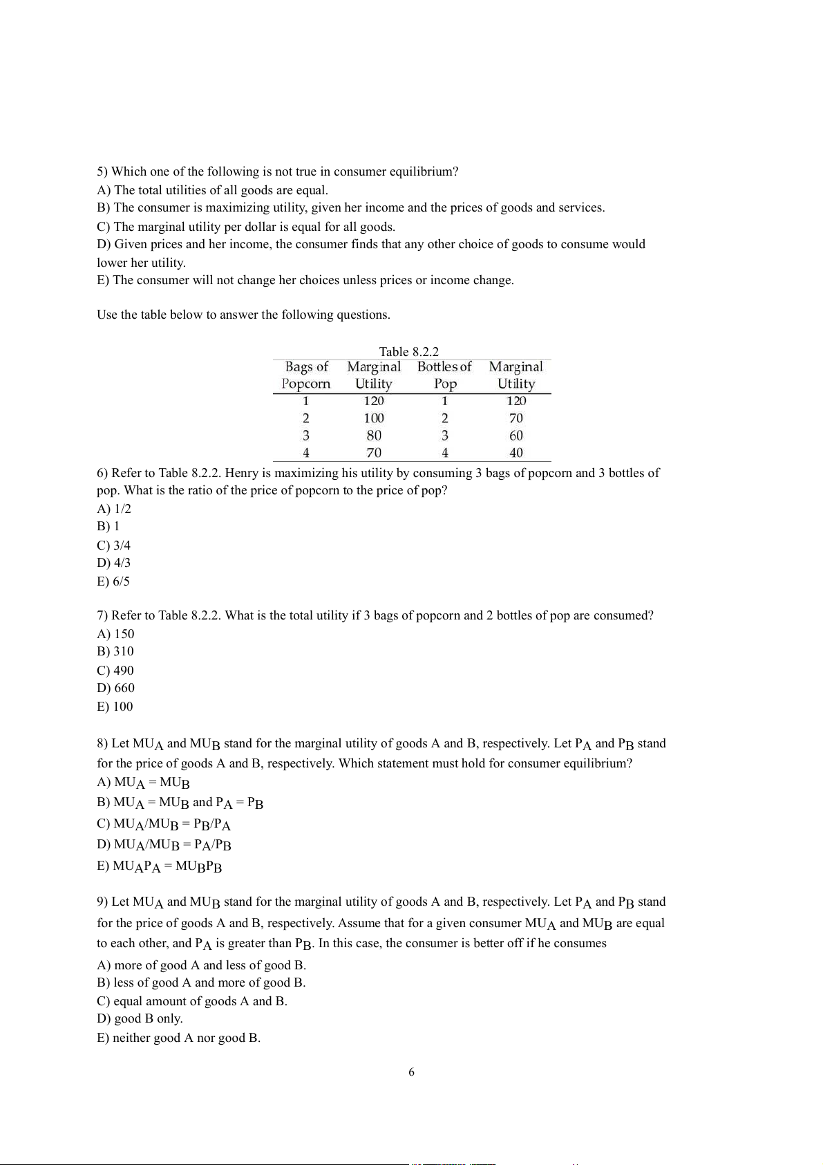D) marginal utility per dollar. E) fractional utility. 2) Utility is A) the value of a good.