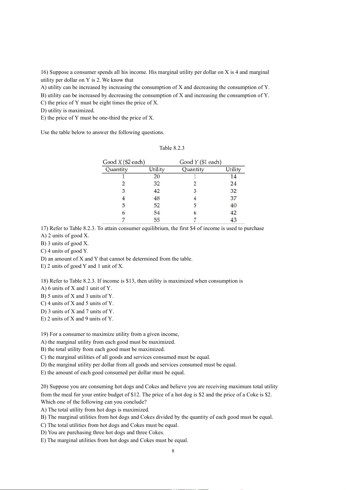 total utility to 23. What is the marginal utility of the second can of Coke? A) 24 units B) 8 units C) 38 units D) 11.5 units E) 7.5 units