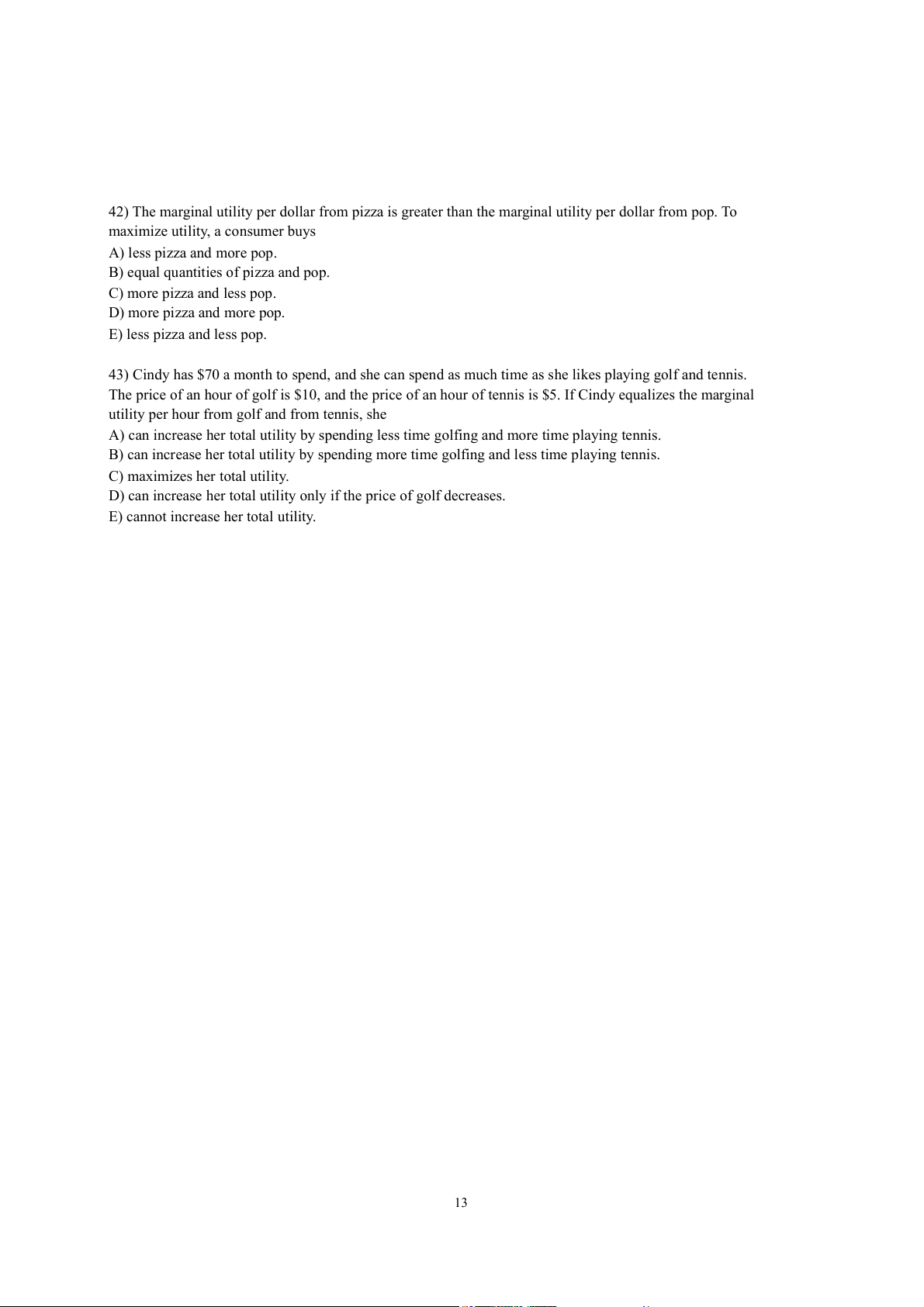 13) According to the principle of diminishing marginal utility, as consumption of a good increases, total utility