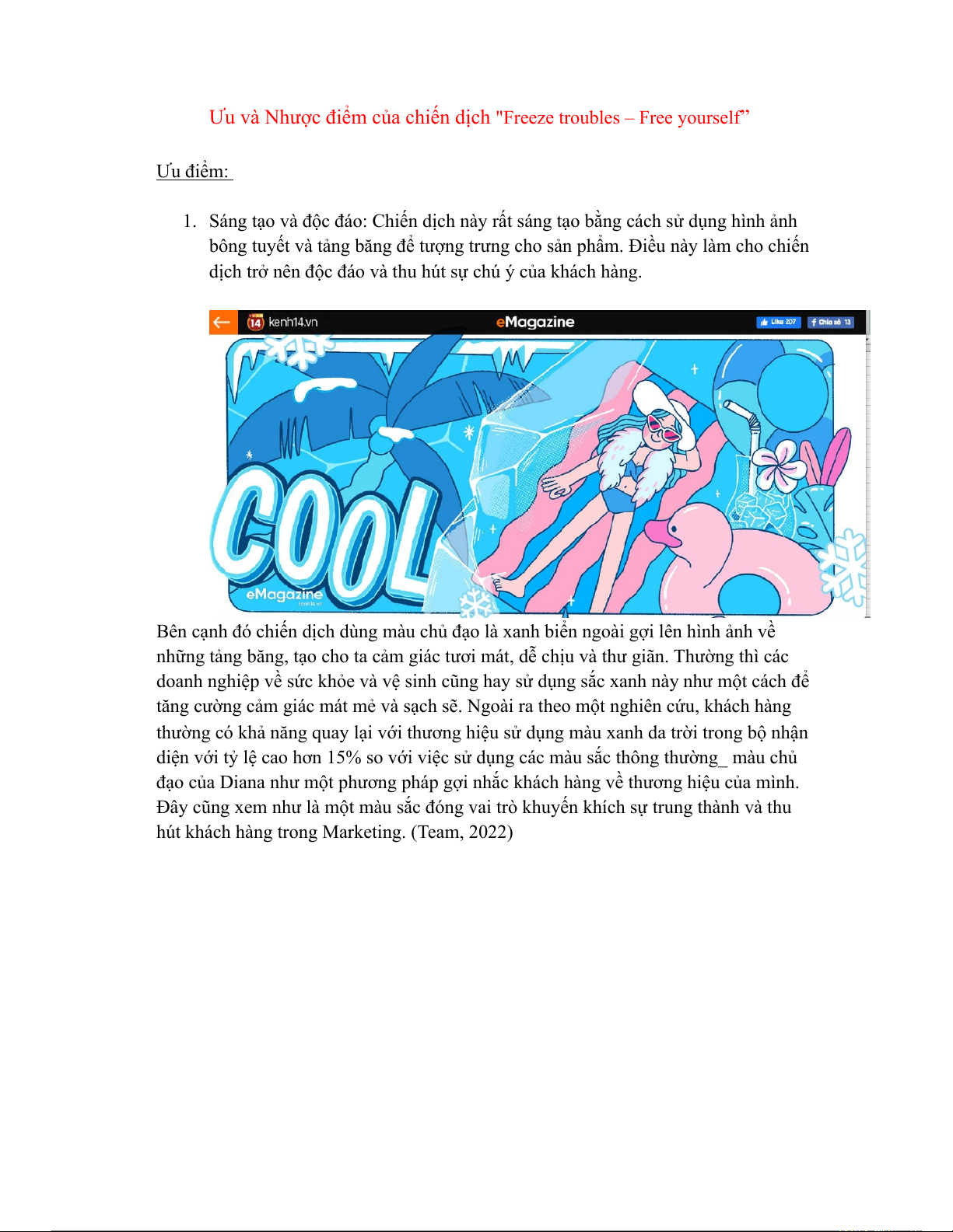 Ưu và Nhược điểm của chiến dịch "Freeze troubles – Free yourself” Ưu điểm: