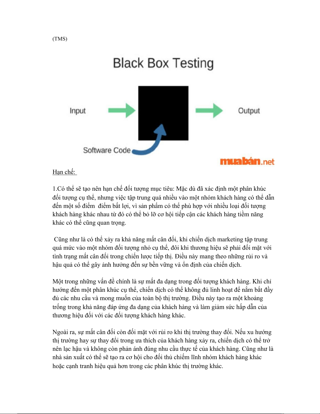 1.Có thể sẽ tạo nên hạn chế đối tượng mục tiêu: Mặc dù đã xác định một phân khúc