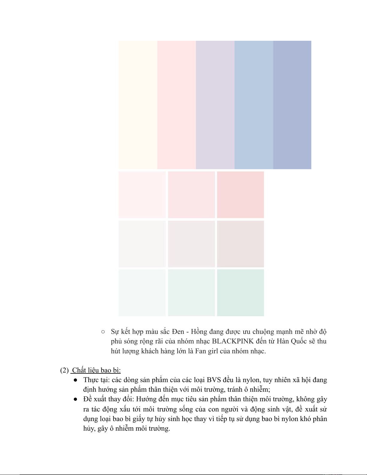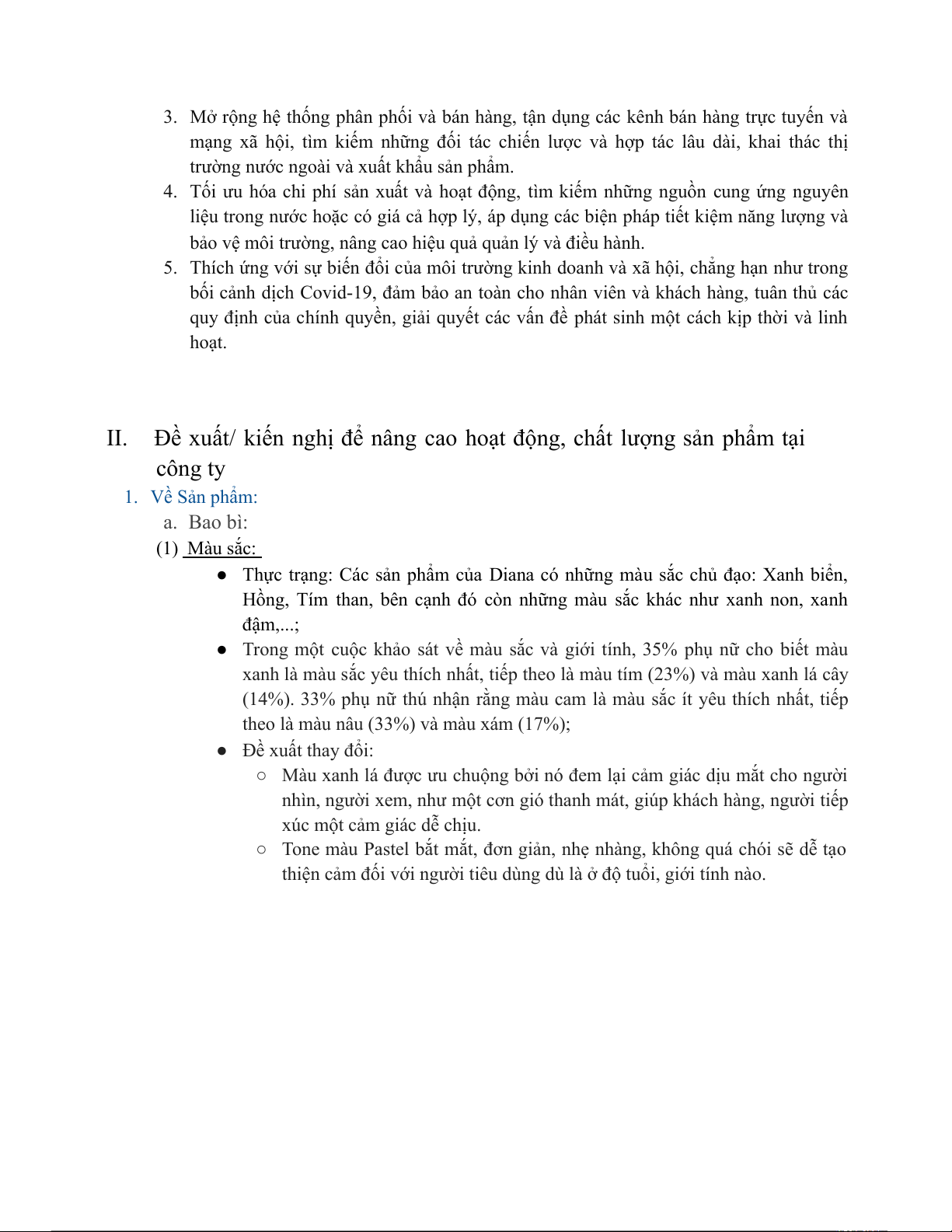 Đề xuất/ kiến nghị để nâng cao hoạt động, chất lượng sản phẩm tại công ty 1. Về Sản phẩm: a. Bao bì: (1) Màu sắc: