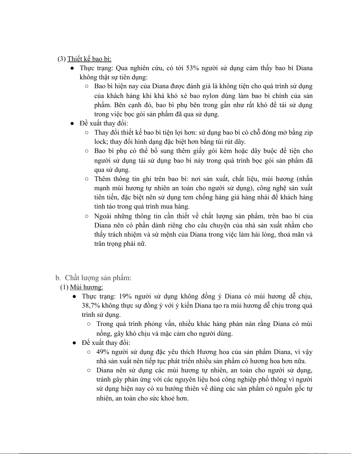 ● Thực trạng: Qua nghiên cứu, có tới 53% người sử dụng cảm thấy bao bì Diana