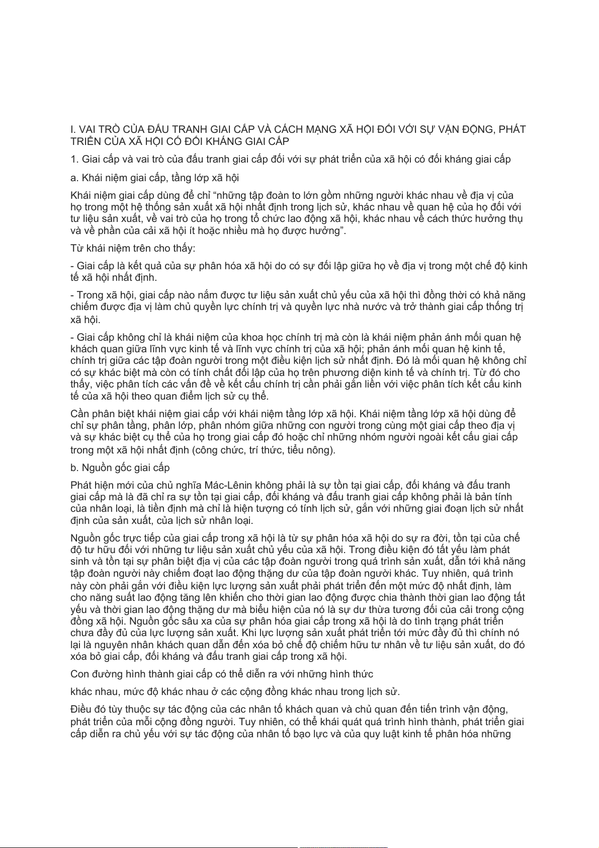 1. Giai cấp và vai trò của đấu tranh giai cấp đối với sự phát triển của xã hội có đối kháng giai cấp