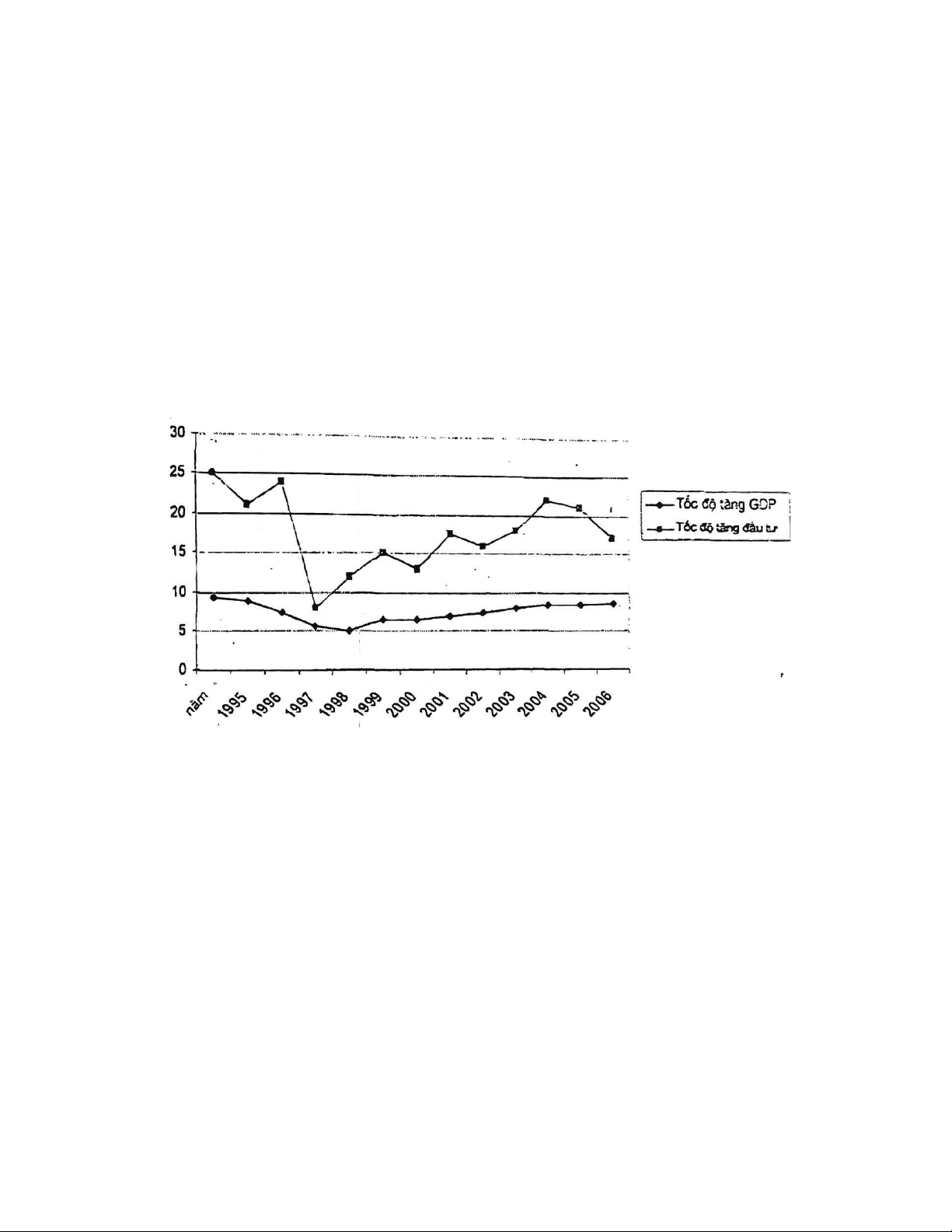 Biểu đồ về quan hệ đầu tư với tăng trưởng kinh tế