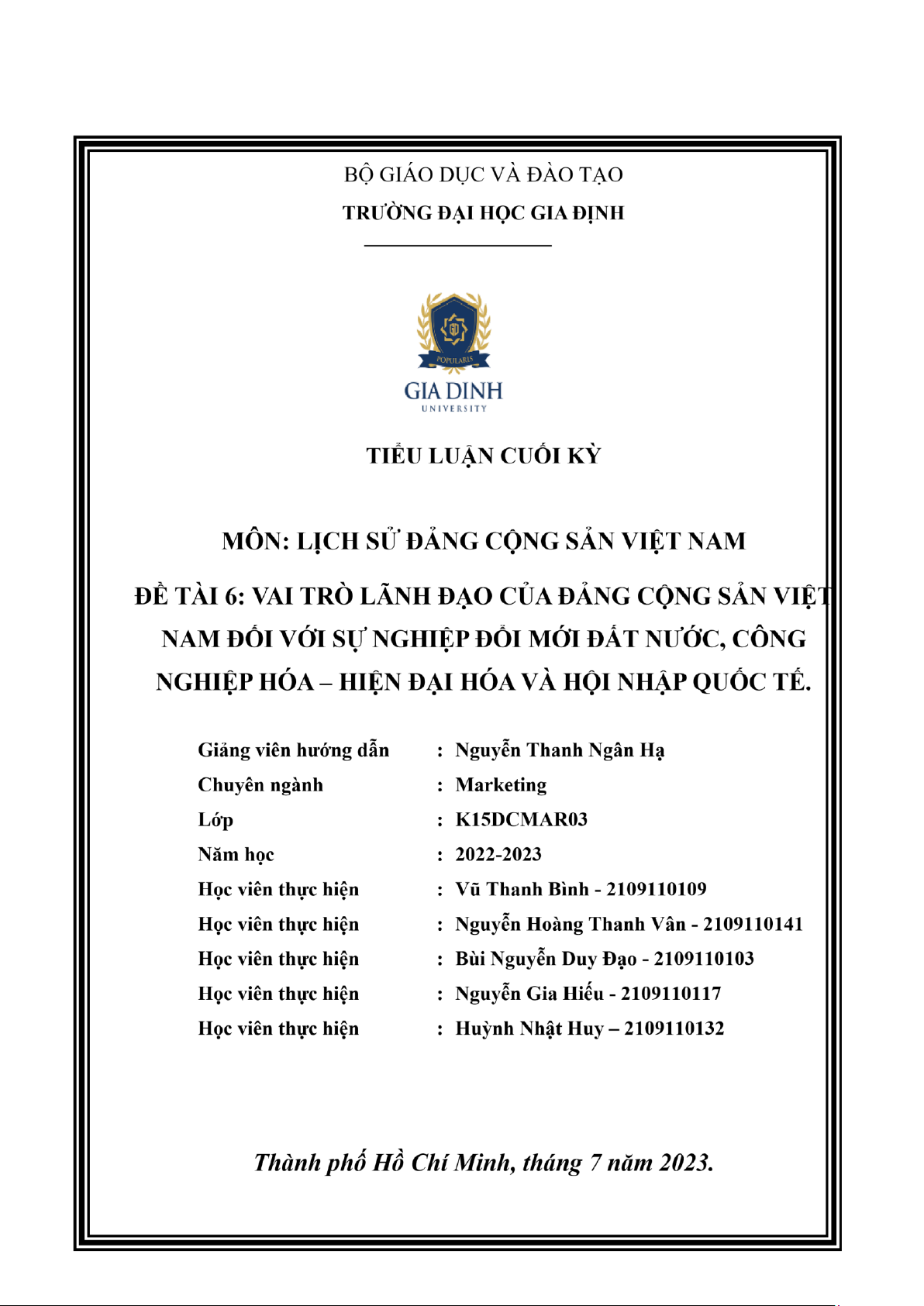 Tiểu luận “Vai trò lãnh đạo của Đảng Cộng sản Việt Nam đối với sự nghiệp đổi mới