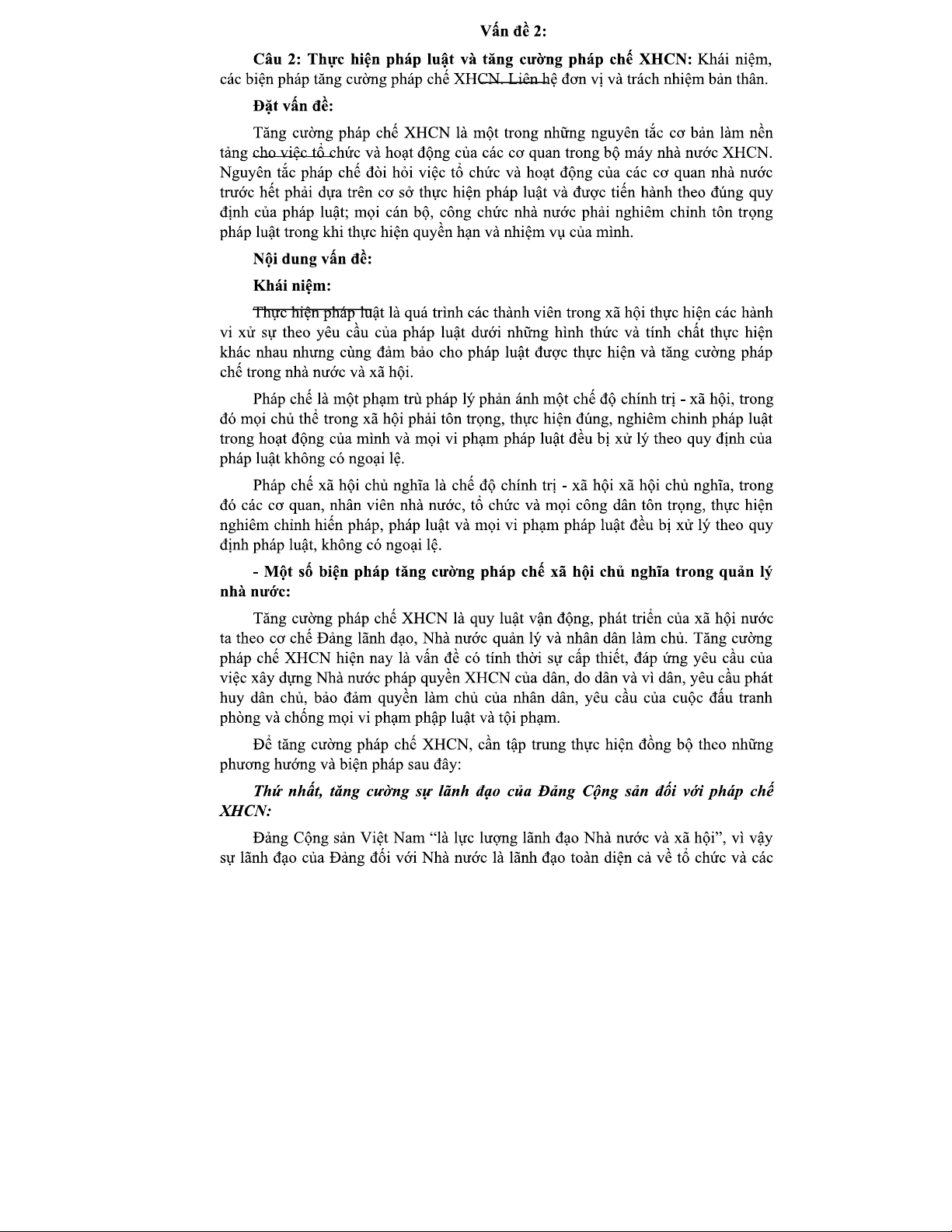 VẤN ĐỀ 2 - THỰC HIỆN PHÁP LUẬT VÀ TĂNG CƯỜNG PHÁP CHẾ XHCN