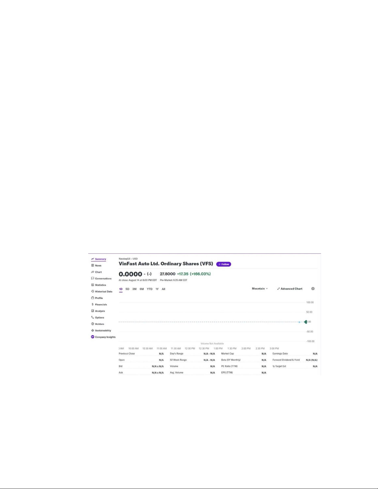 Bảng 5: Giá cổ phiếu VFS Vinfast trên Nasdaq Global Select Market 15.08.2023.
