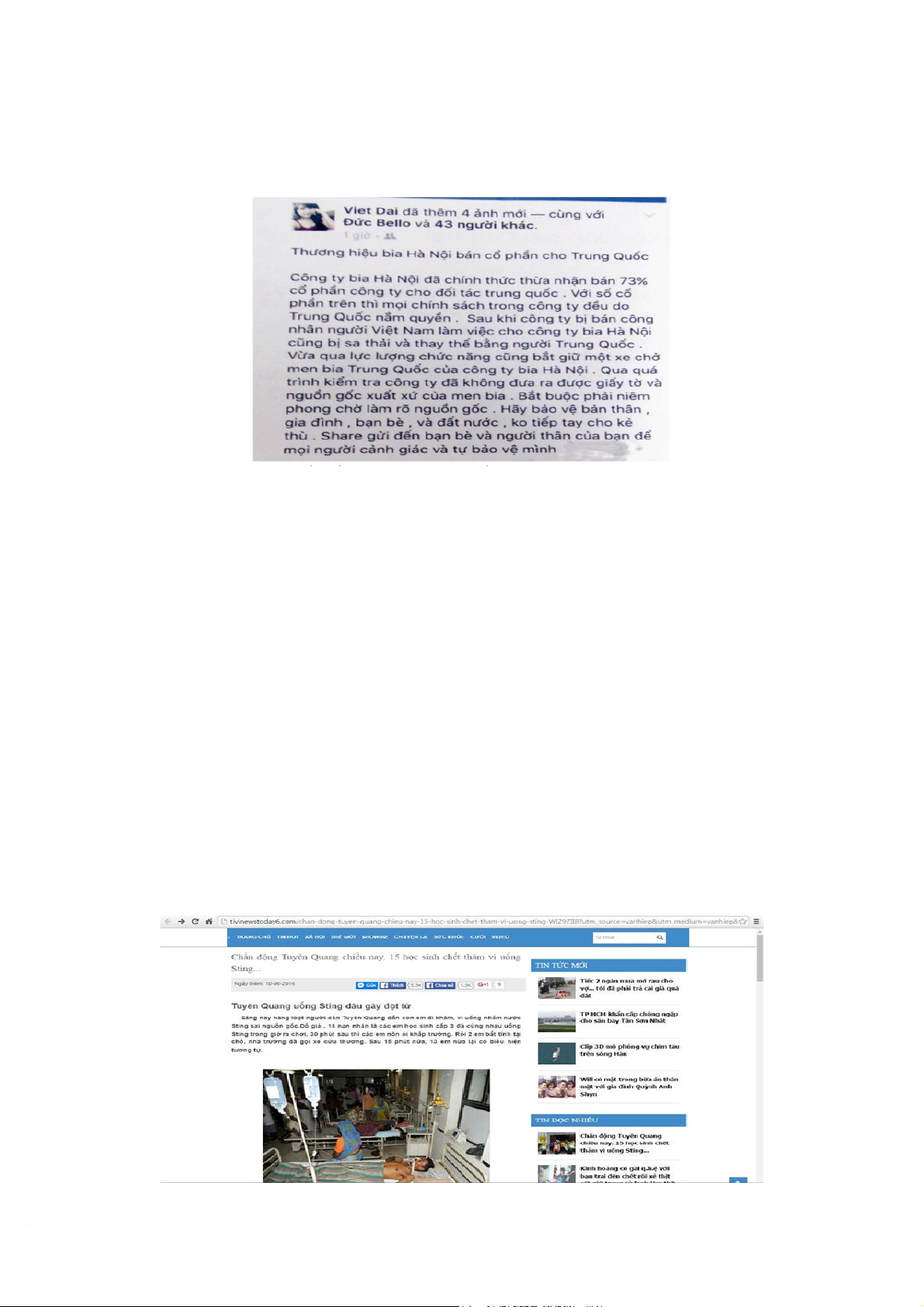 trên Facebook (nickname Viet Dai) thông tin sai sự thật: "Công ty Bia Hà Nội đb chính