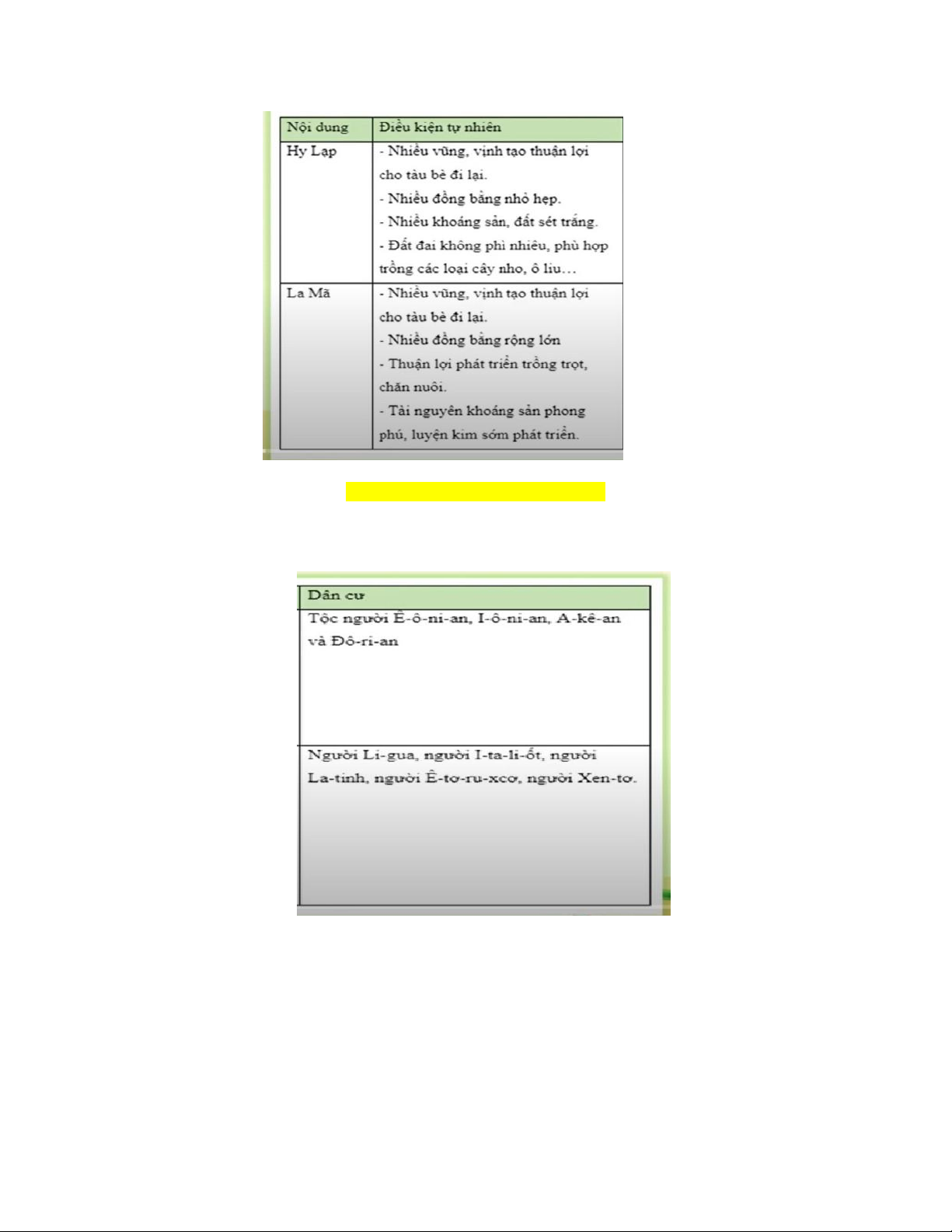 - Tài nguyên thiên nhiên : Hi Lạp và La Mã đều có nhiều vũng , vịnh tạo