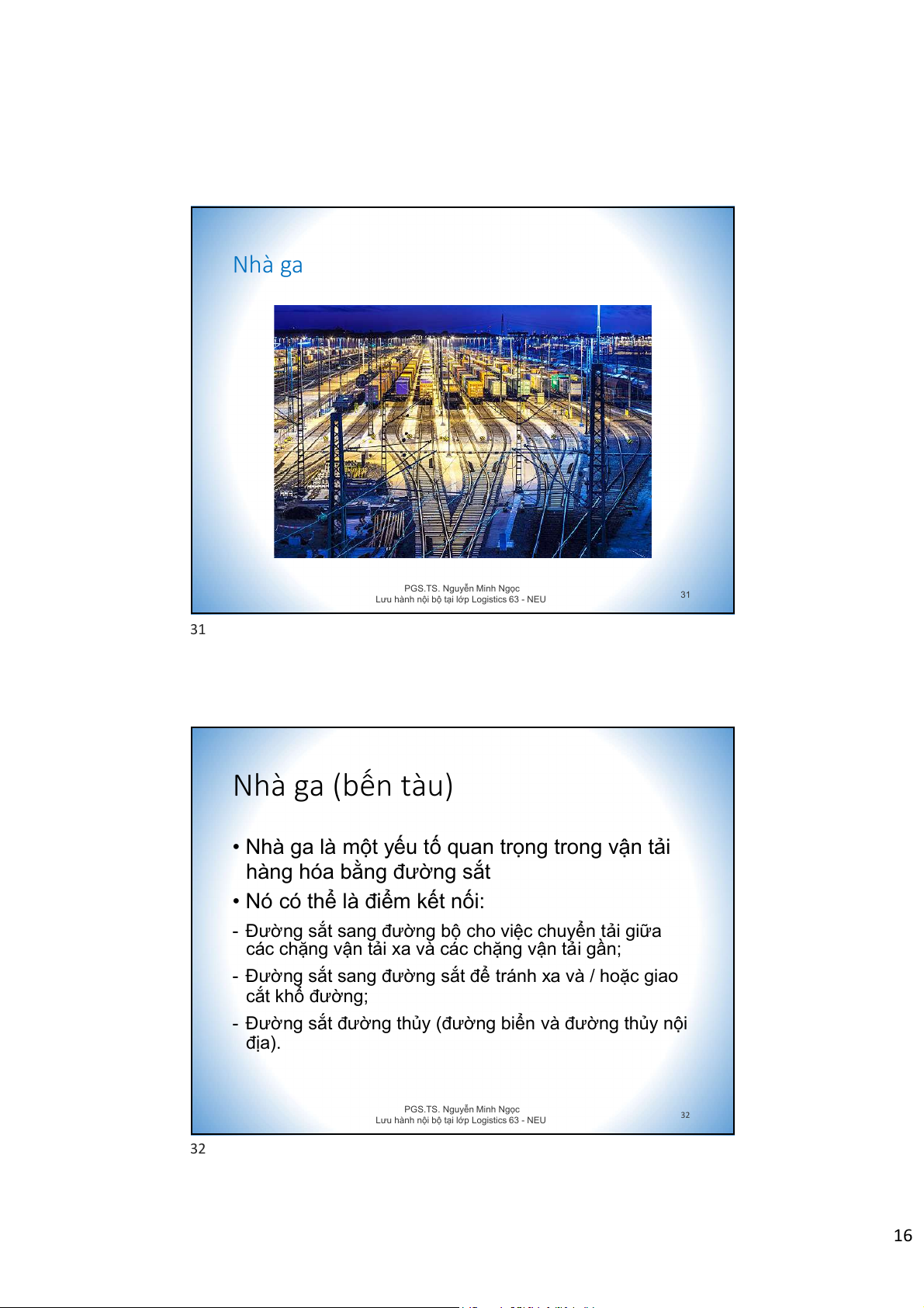 Lưu hành nội bộ tại lớp Logistics 63 - NEU 30 15 Nhà ga PGS.TS. Nguyễn Minh Ngọc 31