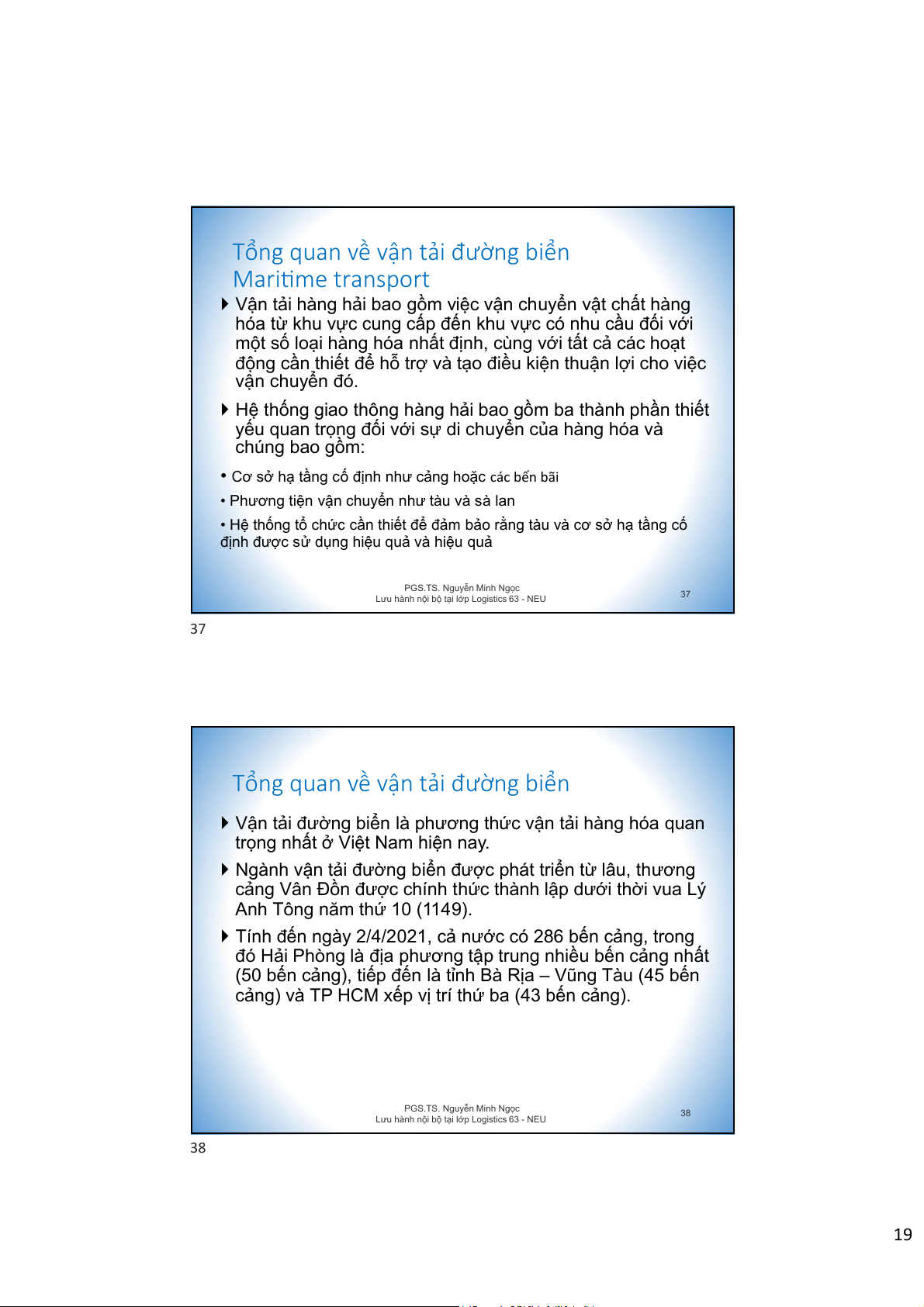 4.1. Tổng quan về vận tải đường biển PGS.TS. Nguyễn Minh Ngọc 36