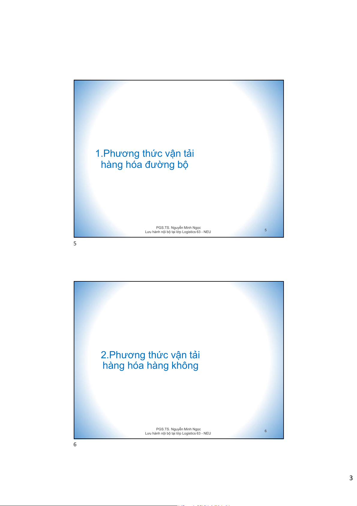 Lưu hành nội bộ tại lớp Logistics 63 - NEU 4 2 1.Phương thức vận tải hàng hóa đường bộ PGS.TS. Nguyễn Minh Ngọc 5
