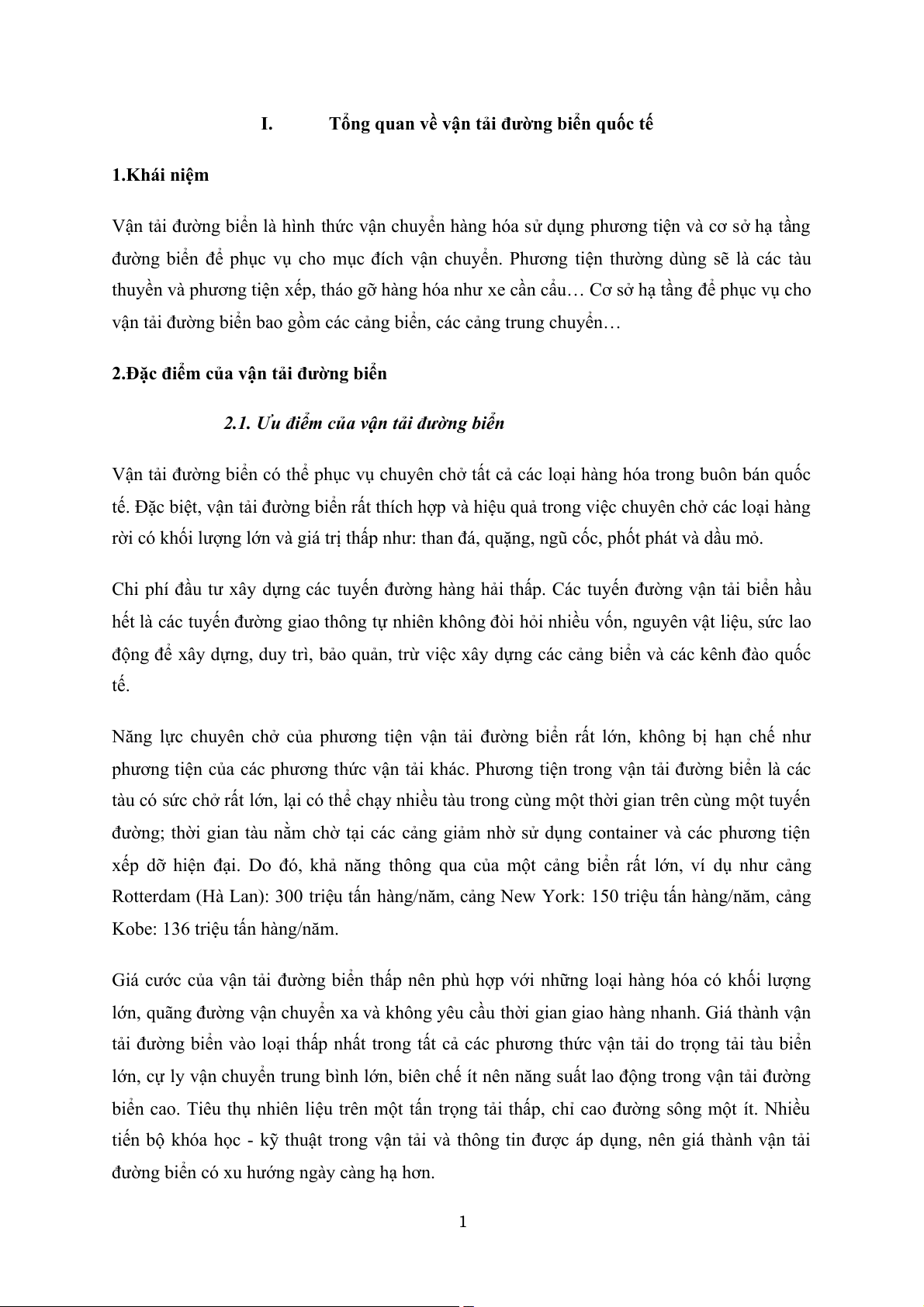 Tổng quan về vận tải đường biển quốc tế 1.Khái niệm