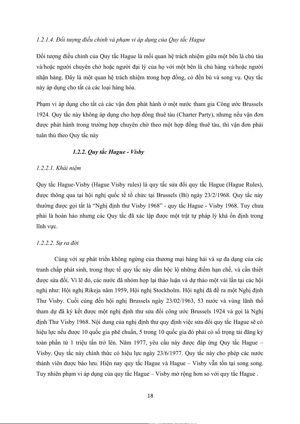 Tuy nhiên phạm vi áp dụng của quy tắc Hague – Visby mở rộng hơn so với quy tắc Hague . 18