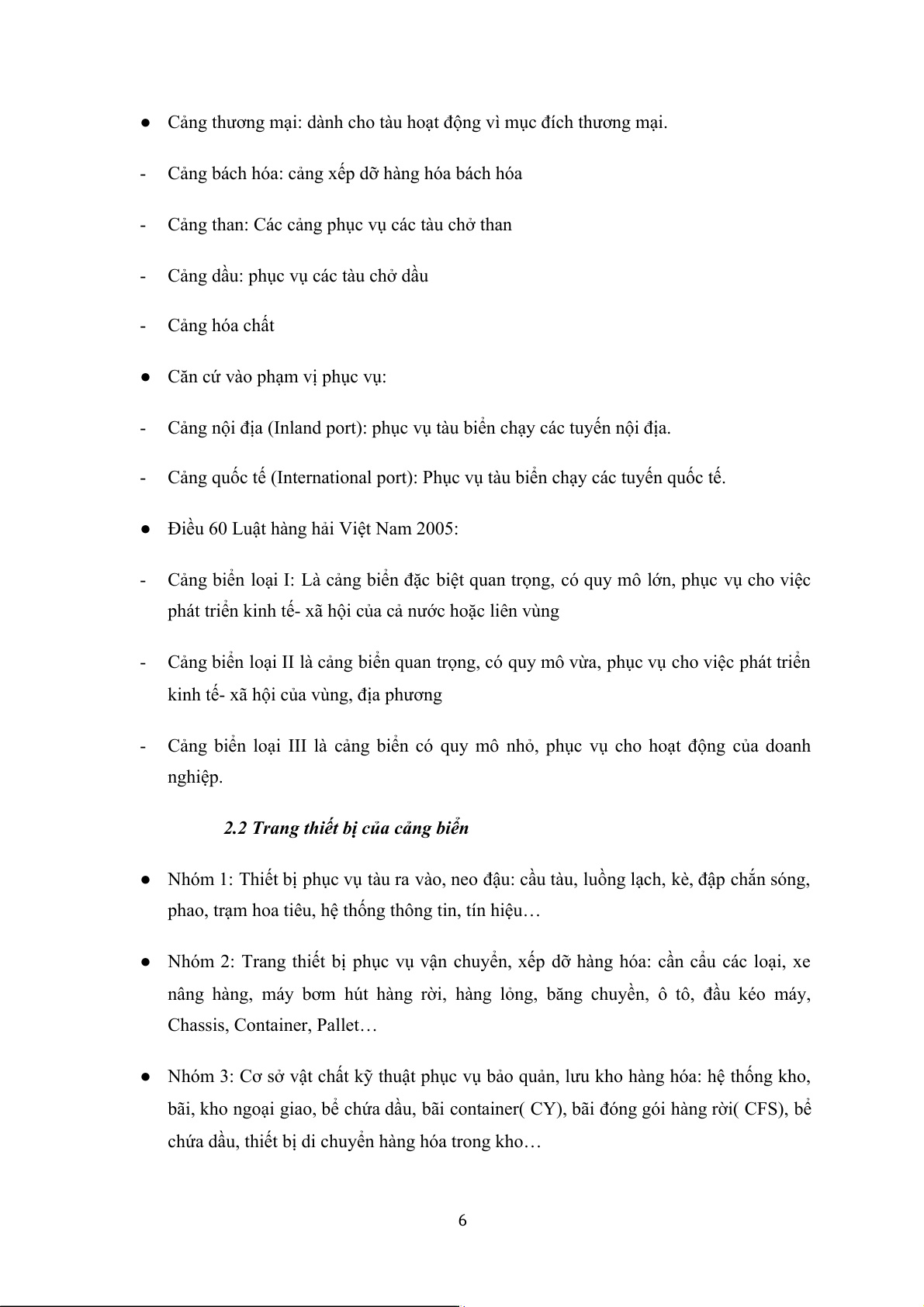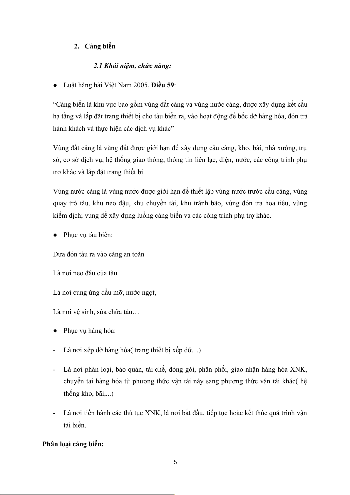 vận tải đường biển bao gồm các cảng biển, các cảng trung chuyển…