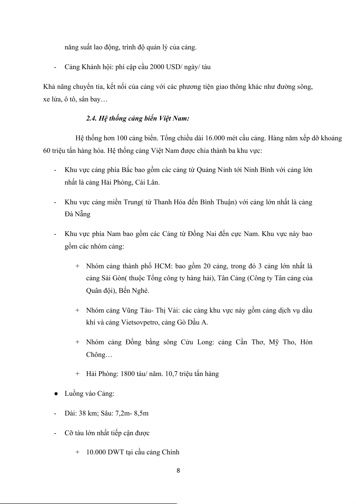 8%, trong đó chủ yếu sử dụng hình thức vận tải đường biển.
