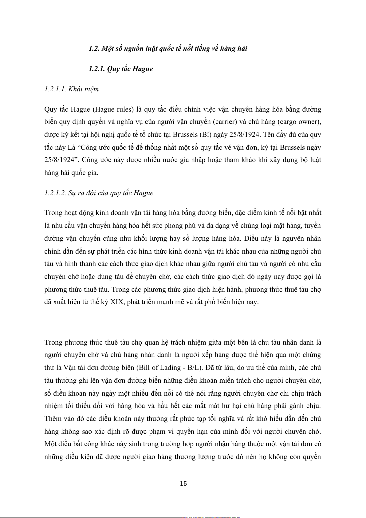 1924. Quy tắc này không áp dụng cho hợp đồng thuê tàu (Charter Party), nhưng nếu vận đơn