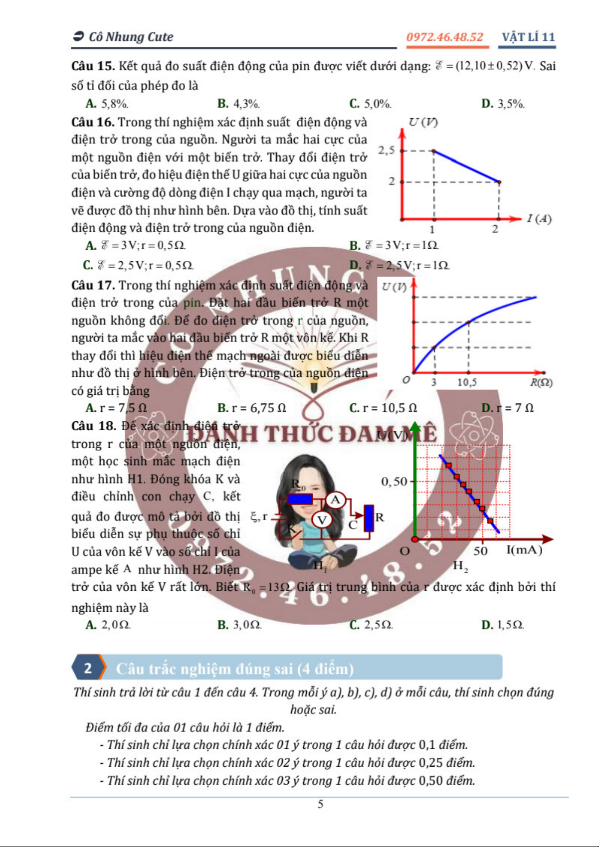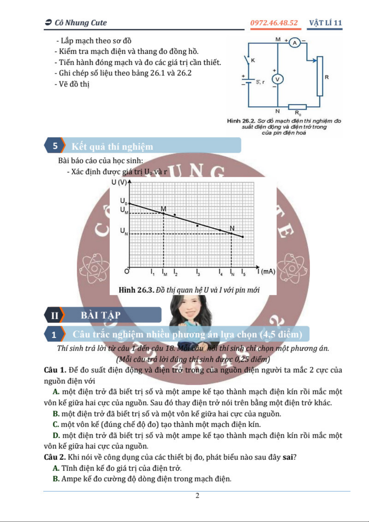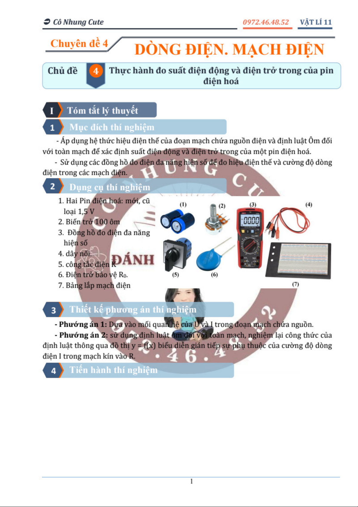 Vật lí 11. Chủ đề 4-Thực hành đo suất điện động và điện trở trong của pin điện hóa. Tài liệu tổng hợp được sưu tầm. Mời mọi người tham khảo