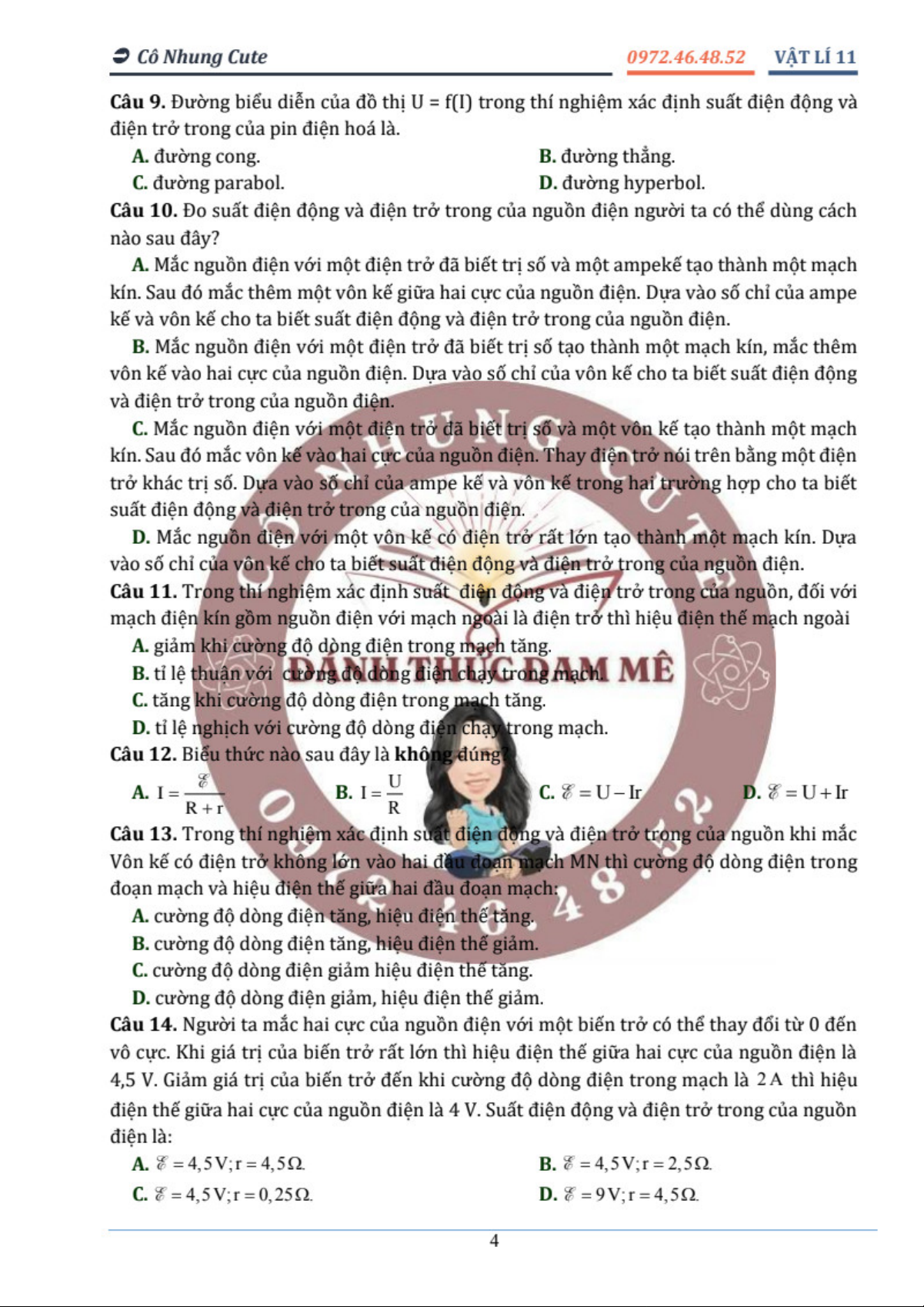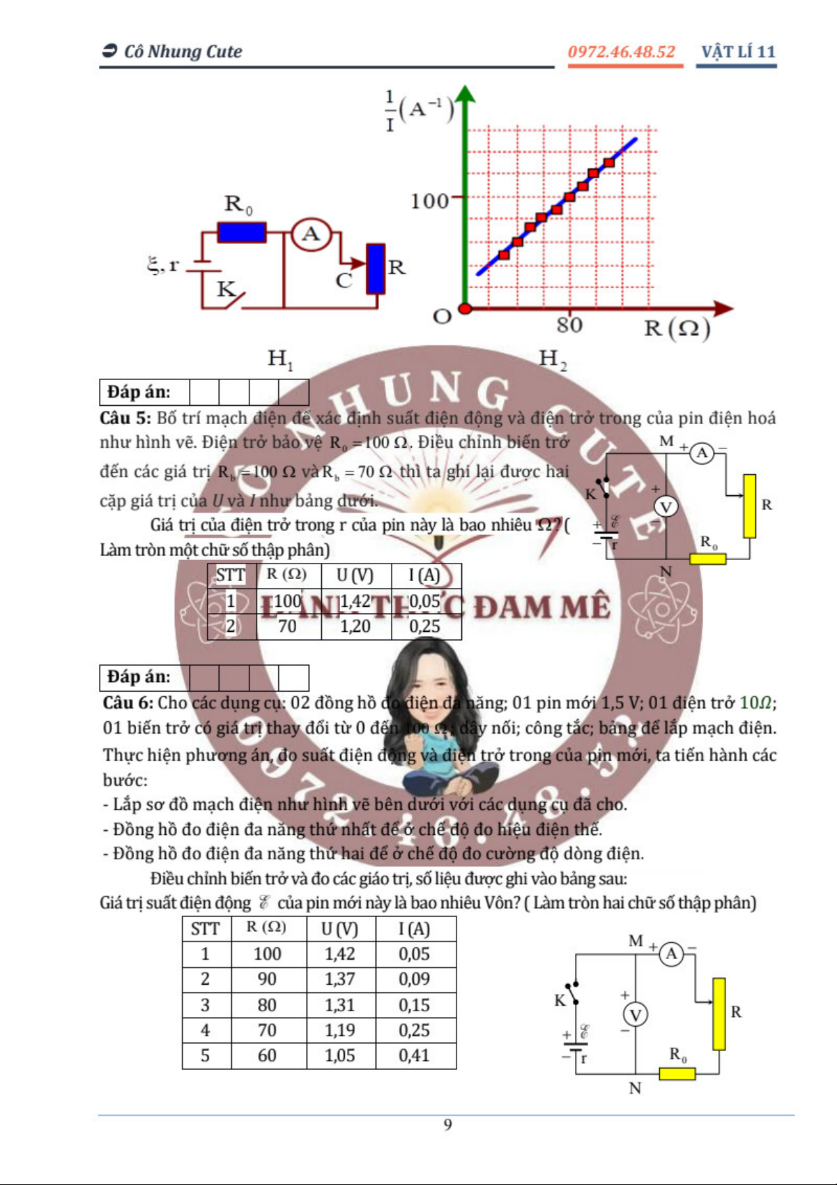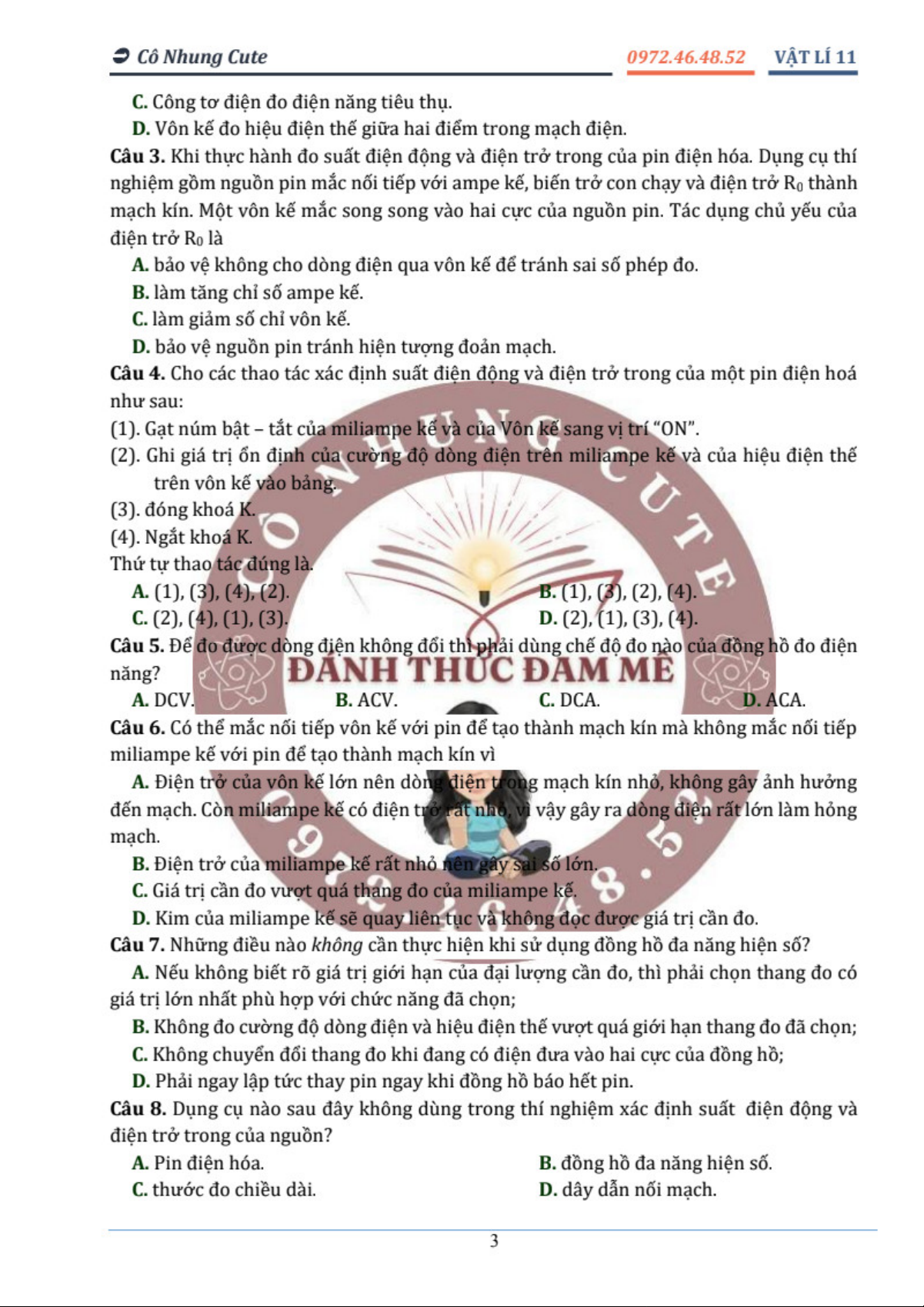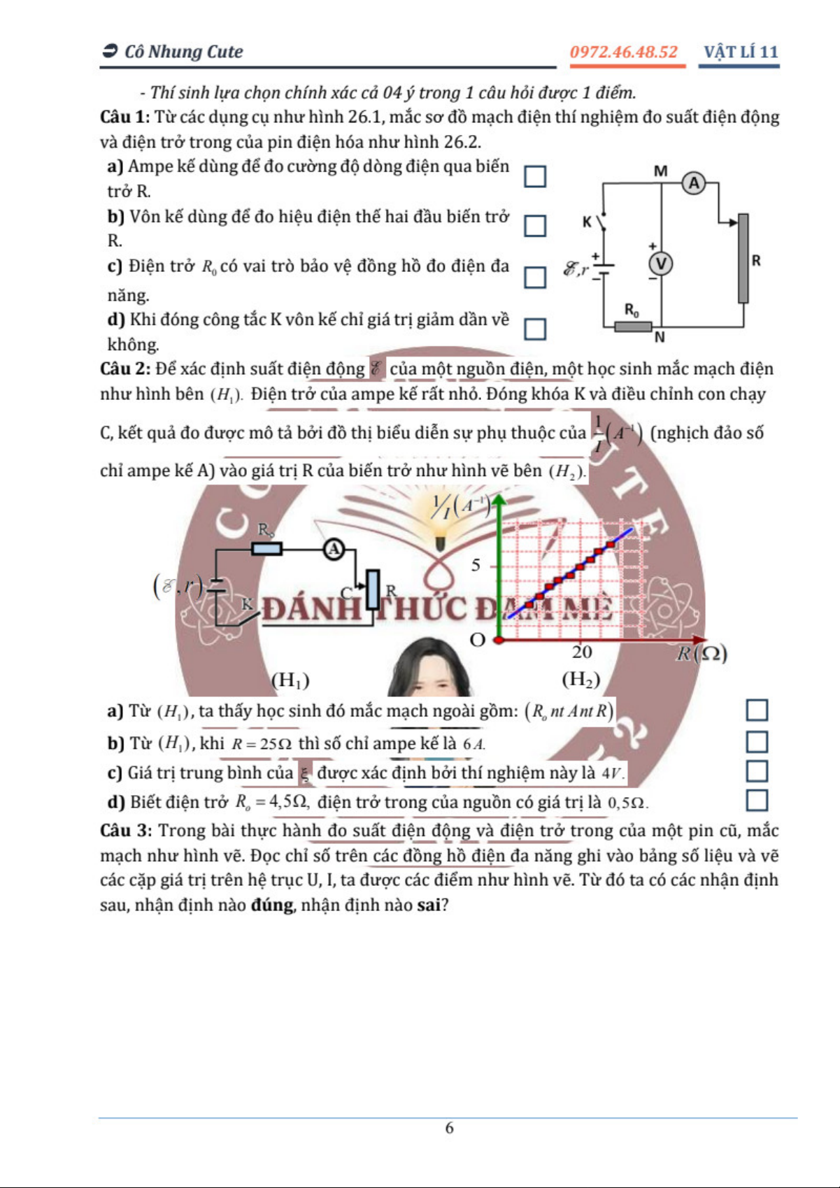 Vật lí 11. Chủ đề 4-Thực hành đo suất điện động và điện trở trong của pin điện hóa. Tài liệu tổng hợp được sưu tầm. Mời mọi người tham khảo
