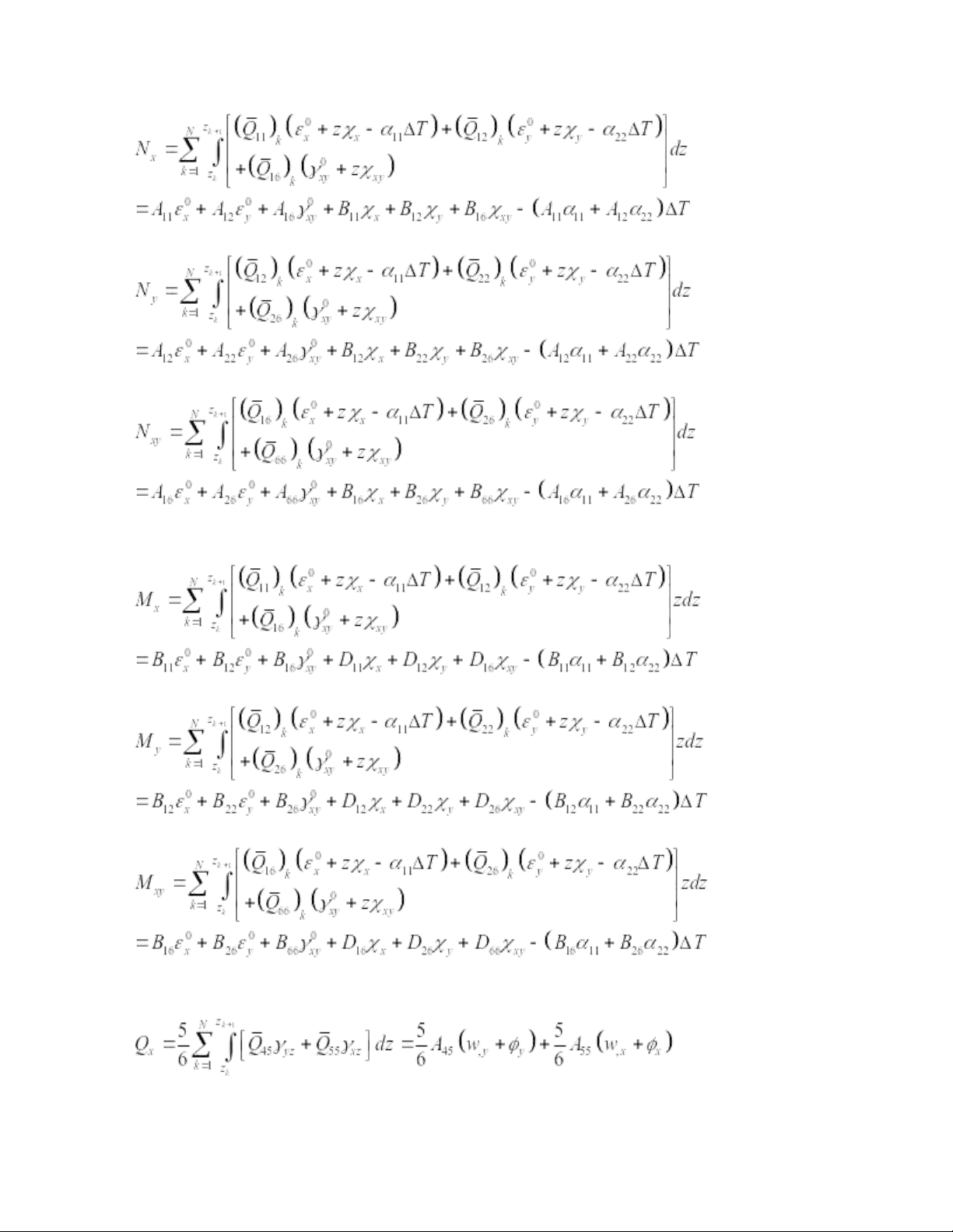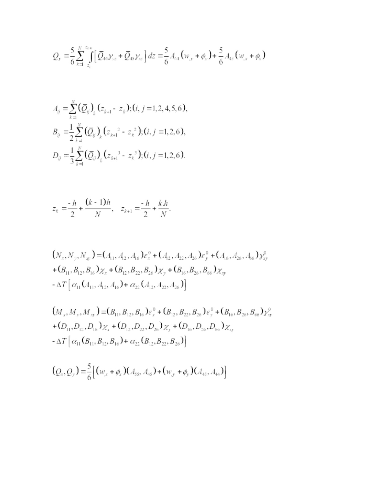 Các thành phần nội lực, momen cho vât liệu có N lớp được xác định như sau: (6)