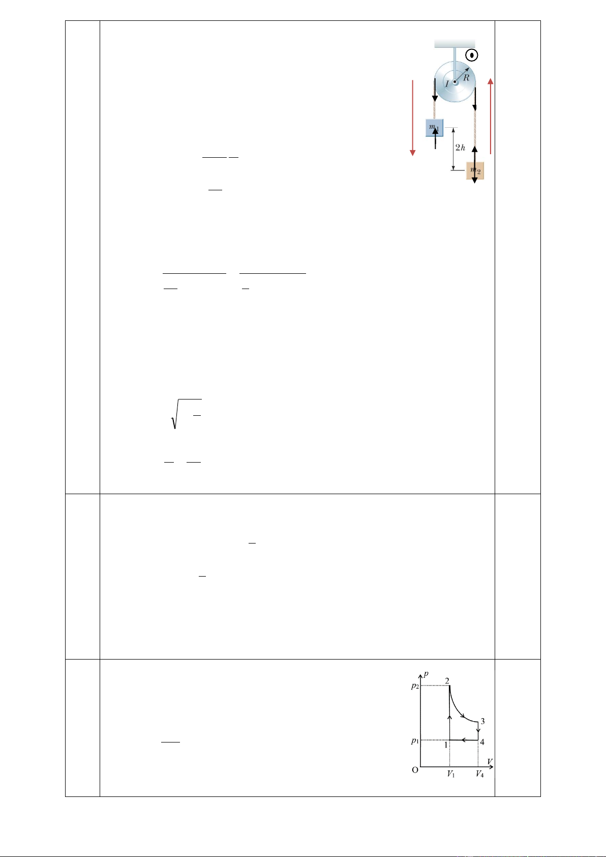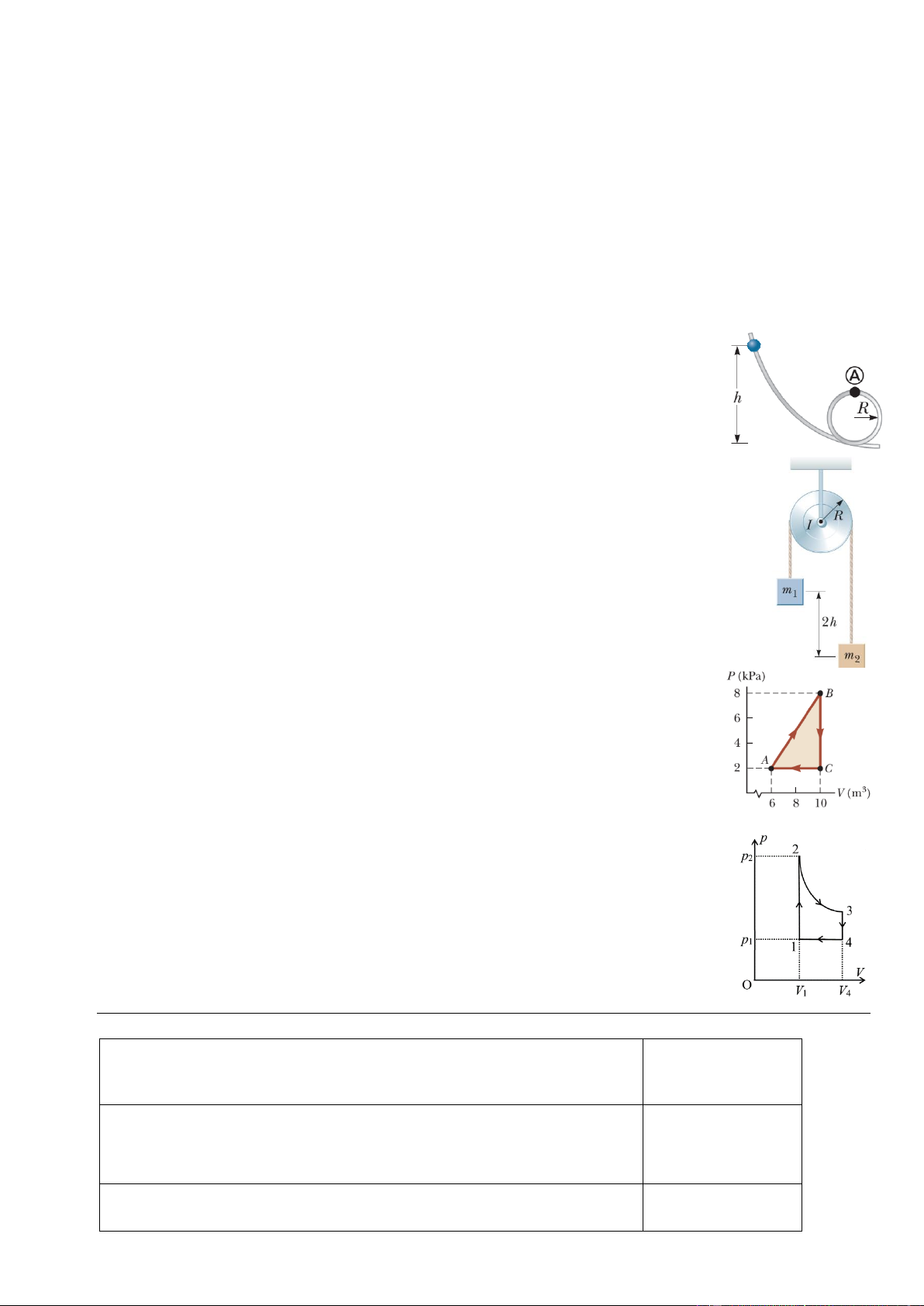 Câu 5: (1,5 điểm) Cho một khối khí lý tưởng thực hiện chu trình như hình bên. Hãy tính: