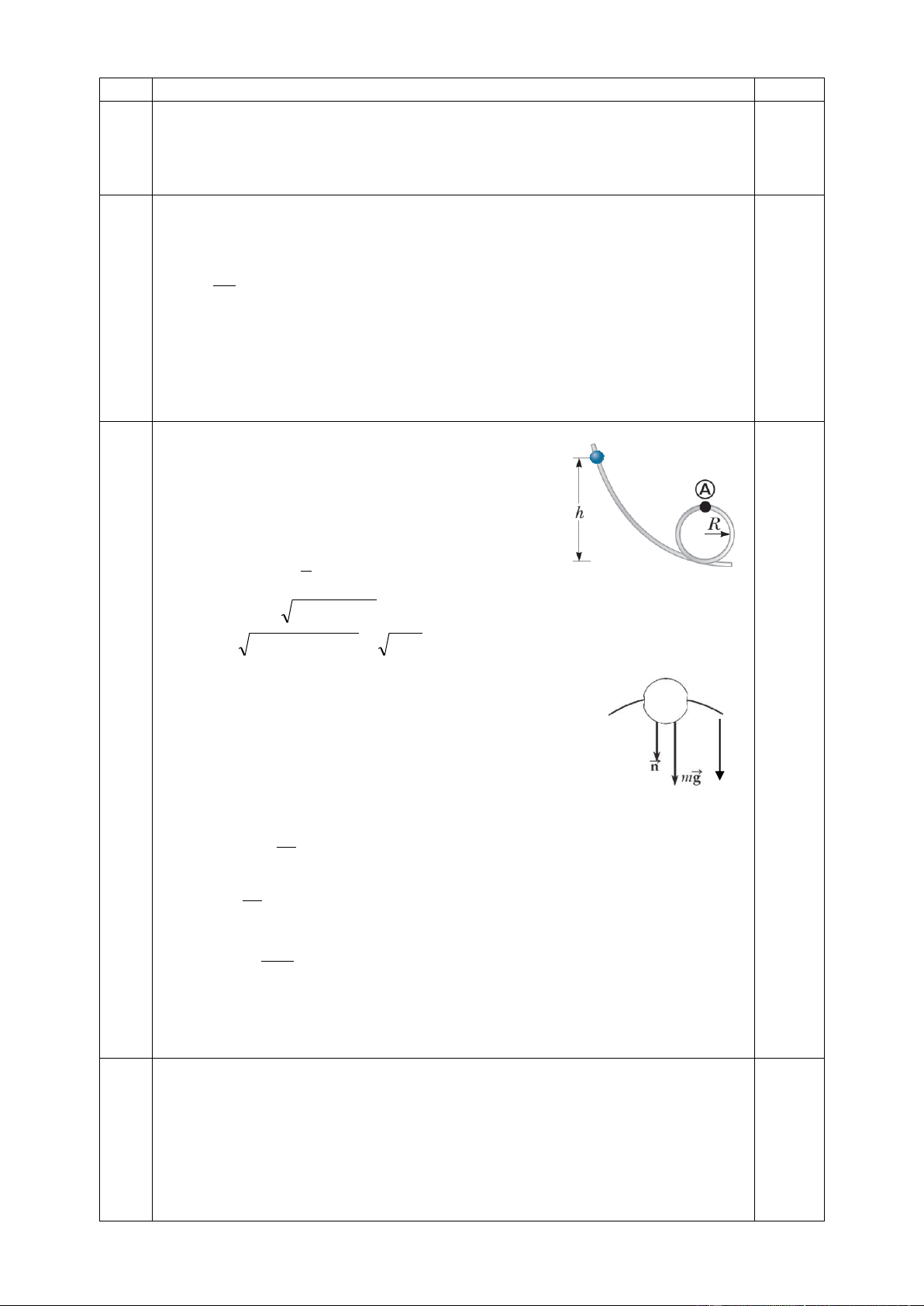 Câu 3: (2,0 điểm) Một viên bi xem như chất điểm được thả không vận tốc đầu tại