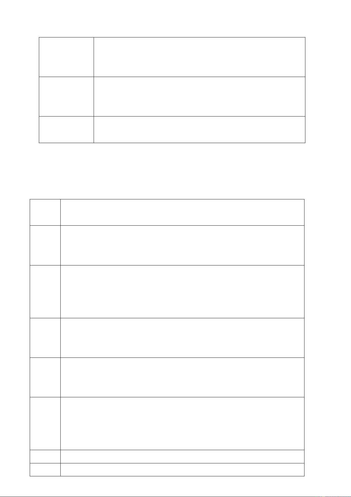 1 | Introduction to the Course UNIT 5: FOOD Lead-in: Listen to the “street food”. Review food verbs. Part 5.a: Famous for Food Nội dung chính Vocabulary: Chủ đề food Pronunciation: Listening: Nghe những đoạn miêu tả và nối đúng thông tin Grammar: Danh từ đếm được và không đếm được Speaking: Trả lời các câu hỏi về các món ăn của quốc gia mình và trình bày một bữa ăn cho 6 người Part 5.b: Top five food markets Nội dung chính Reading: Đọc bài báo, nắm bắt thông tin chi tiết để trả lời câu hỏi Vocabuary: quantities & containers Grammar: a lot of/ much/many, how many/much Listening: Nghe hiểu thông tin chi tiết để trả lời câu hỏi Speaking: Đặt câu hỏi và trả lời để trao đổi mua thực phẩm Part 5.c: An eater’s guide to food labels Nội dung chính Reading: Đọc trang blog về các loại thức ăn, tìm thông tin chi 2tiết để trả lời câu hỏi Writing: Viết lời khuyên về sử dụng thực phẩm tốt cho sức khỏe Speaking: Đưa ra lời khuyên về việc dùng thực phẩm có lợi cho sức khỏe | CLO 1 CLO 2 CLO 3 | Sinh viên ôn nội dung đã học và đọc trước nội dung cho buổi học kế tiếp. | 11 | Giảng viên thuyết trình, gợi ý cho sinh viên tham gia bài giảng. Sinh viên luyện tập cá nhân hoặc theo cặp/nhóm theo nội dung bài và sửa bài với sự hướng dẫn của giáo viên. | 5 | 1.511