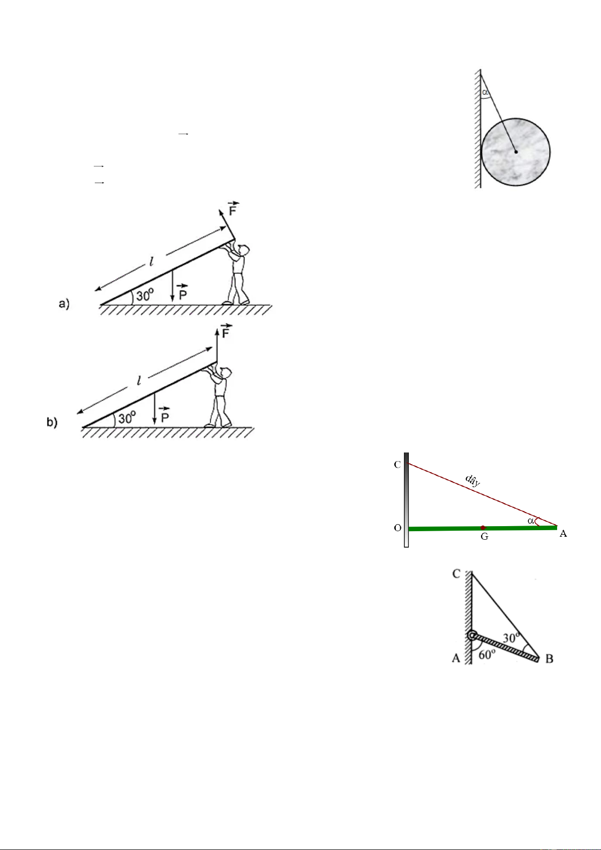 Người ấy tác dụng một lực F vào đầu trên của tấm gỗ để giữ nó hợp với mặt đất một góc 30o
