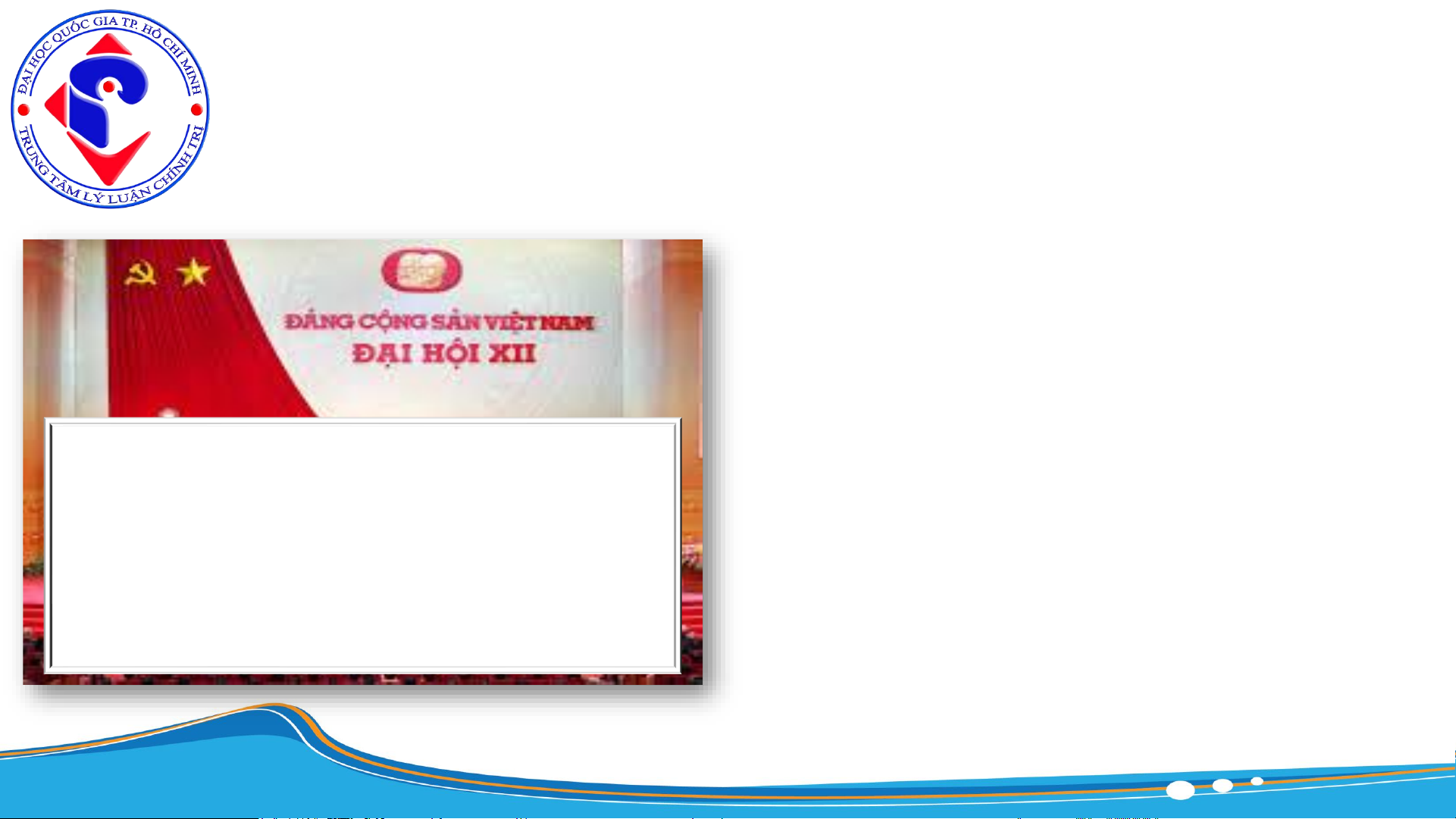 NỘI DUNG CHÍNH CỦA ĐẠI HỘI LẦN THỨ XII 1 2 1 1 2 3 4 Nêu mục tiêu, Tổng kết Rút ra 5 nhiệm vụ tổng Nêu 6 30 năm đổi bài học quát phát nhiệm vụ mới (1986- kinh